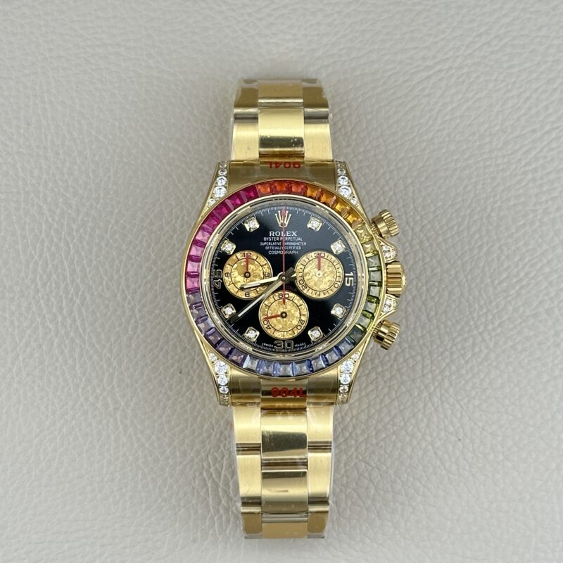 Clean Factory Rolex daytona 116598RBOW-0001 Yellow Gold Rainbow Moissanite Super Clone