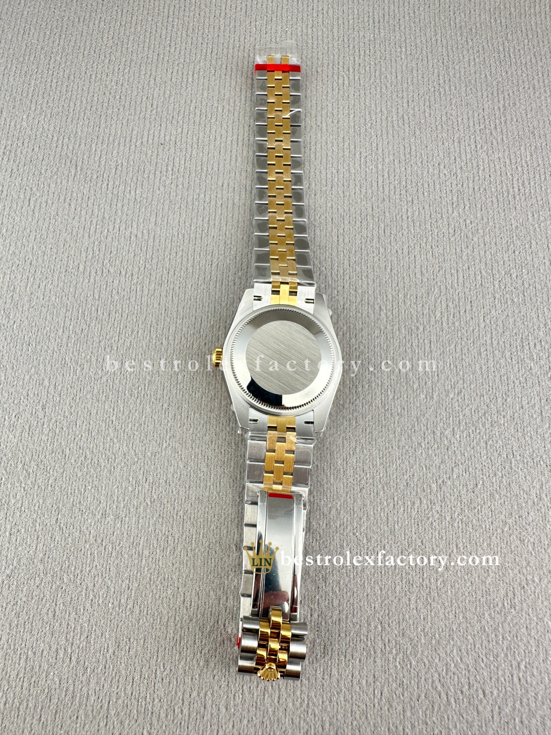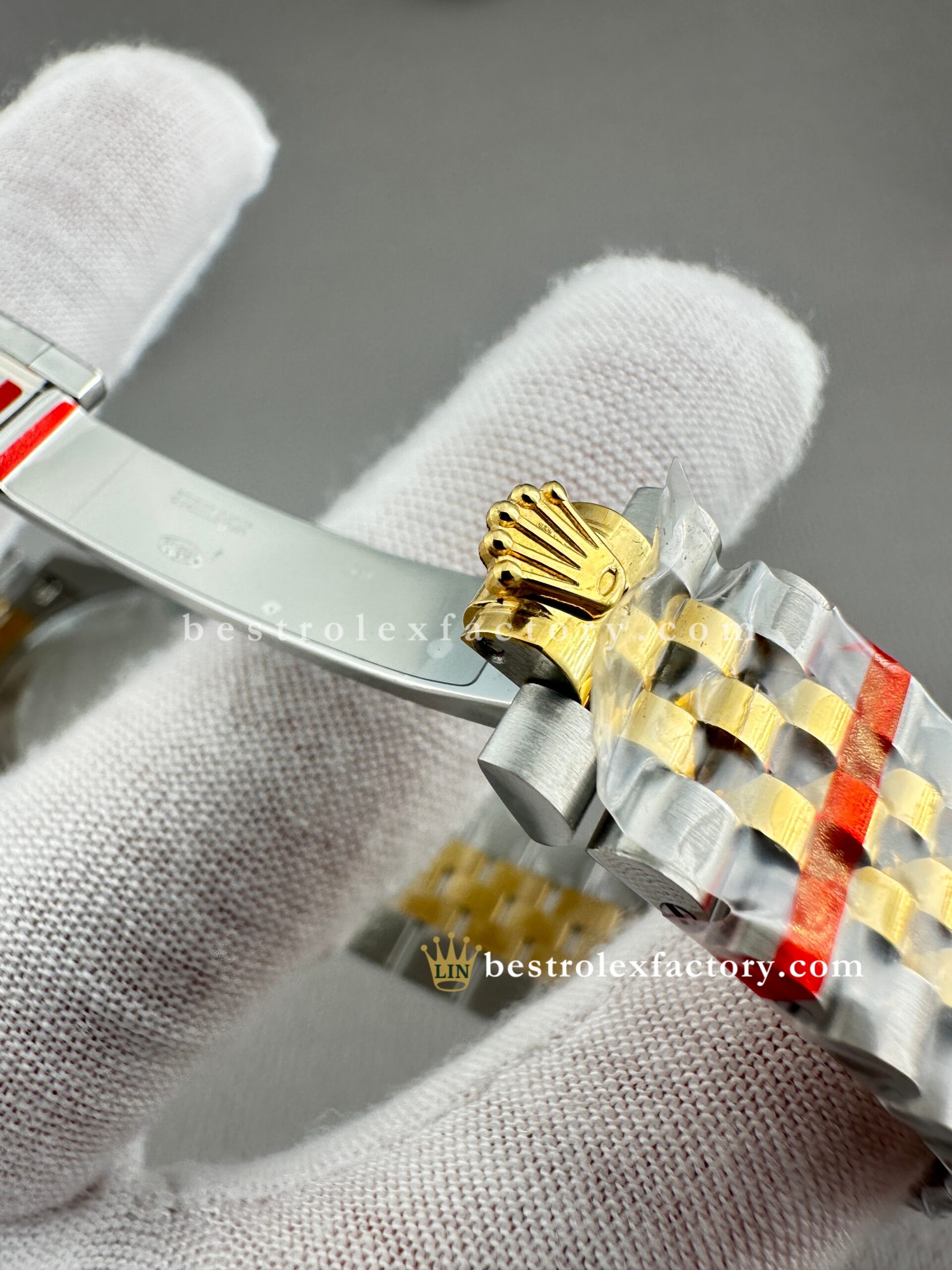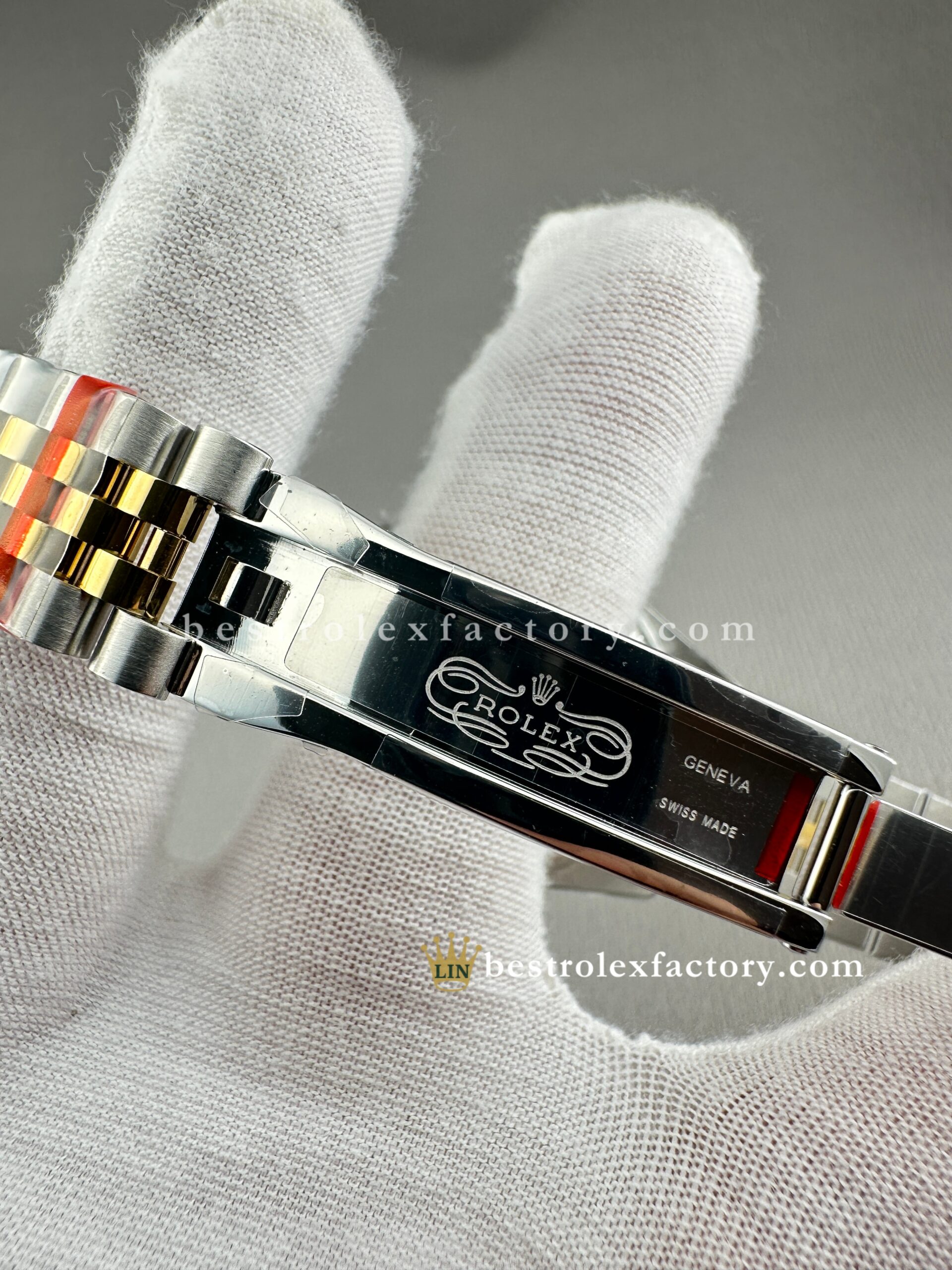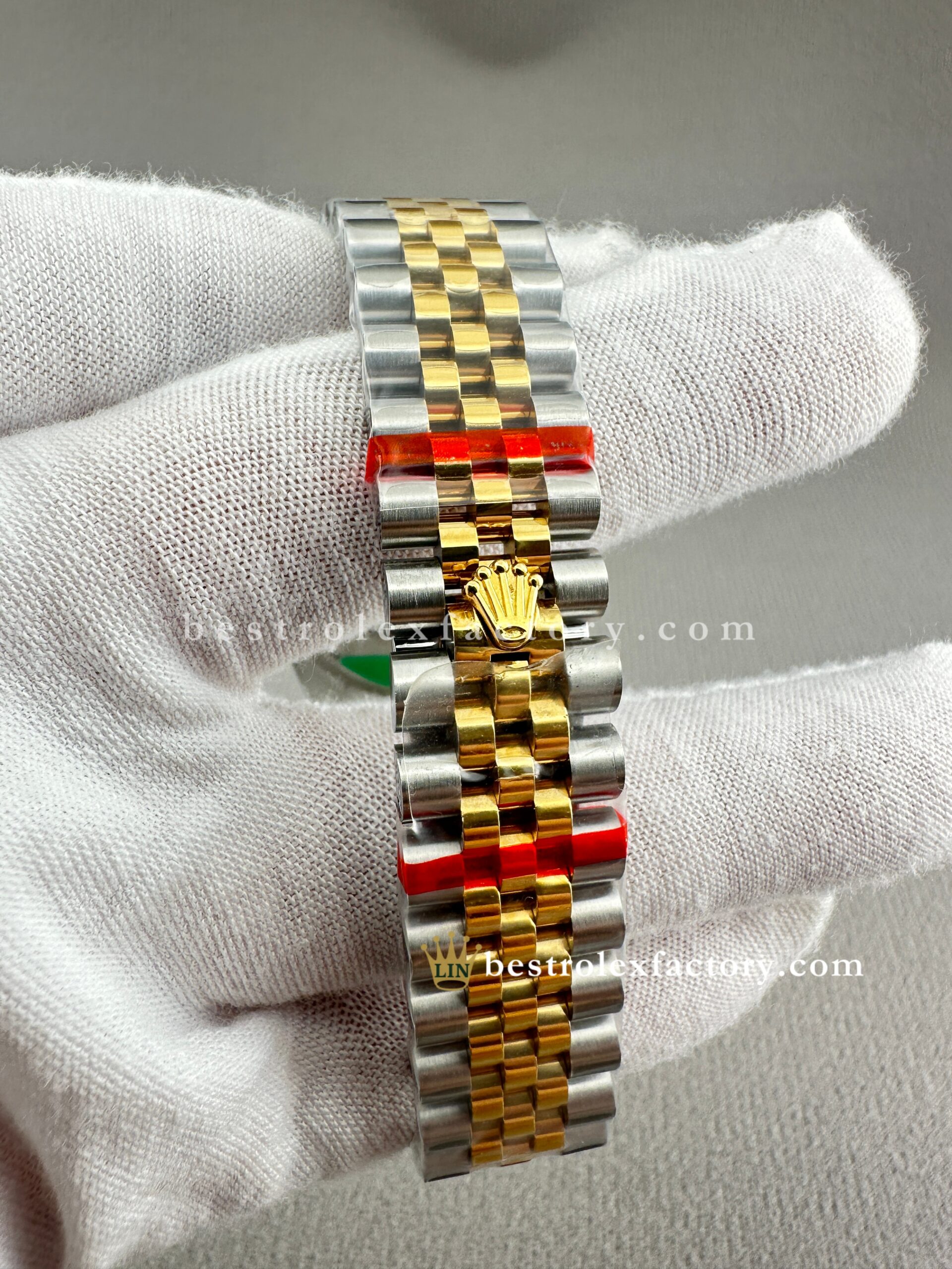 • The Jubilee bracelet—one of Rolex’s most elegant—feels just right here. The five-link design looks even more intricate at this scale, with polished center links in yellow gold adding a touch of brightness against the brushed steel outer links. Clean Factory ensures seamless integration and finish, with tight tolerances that speak to their commitment to detail.