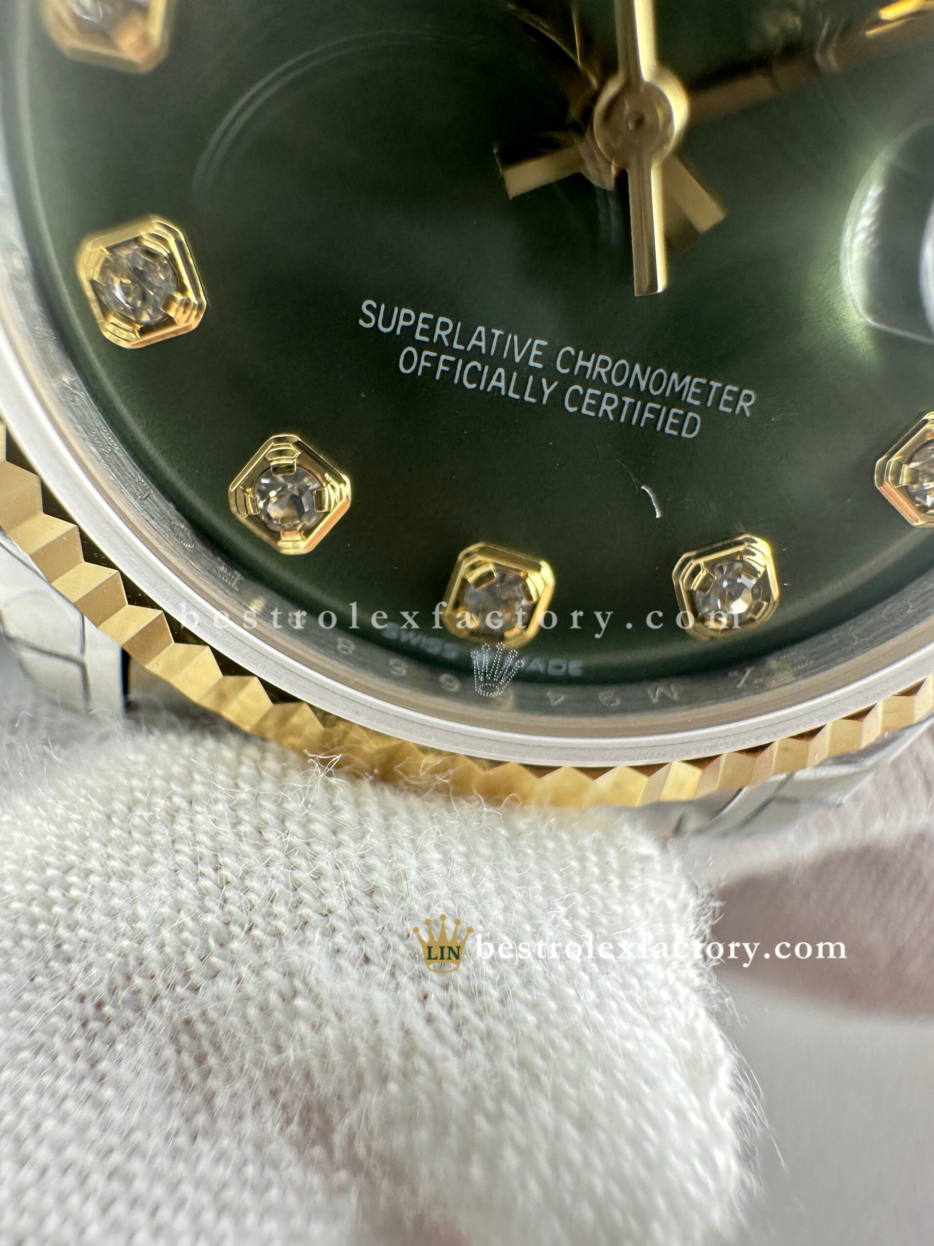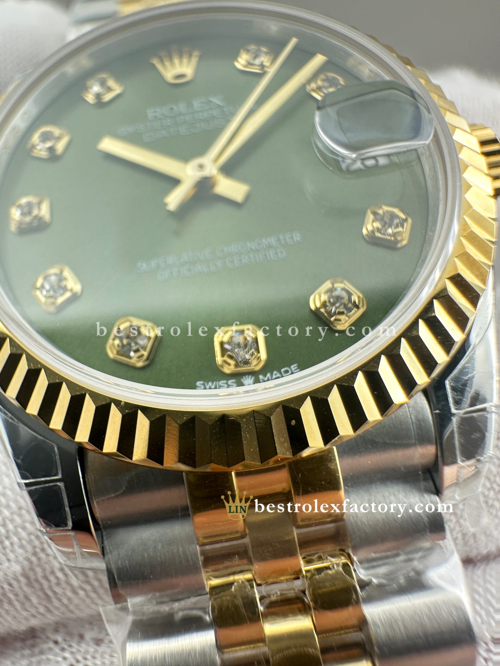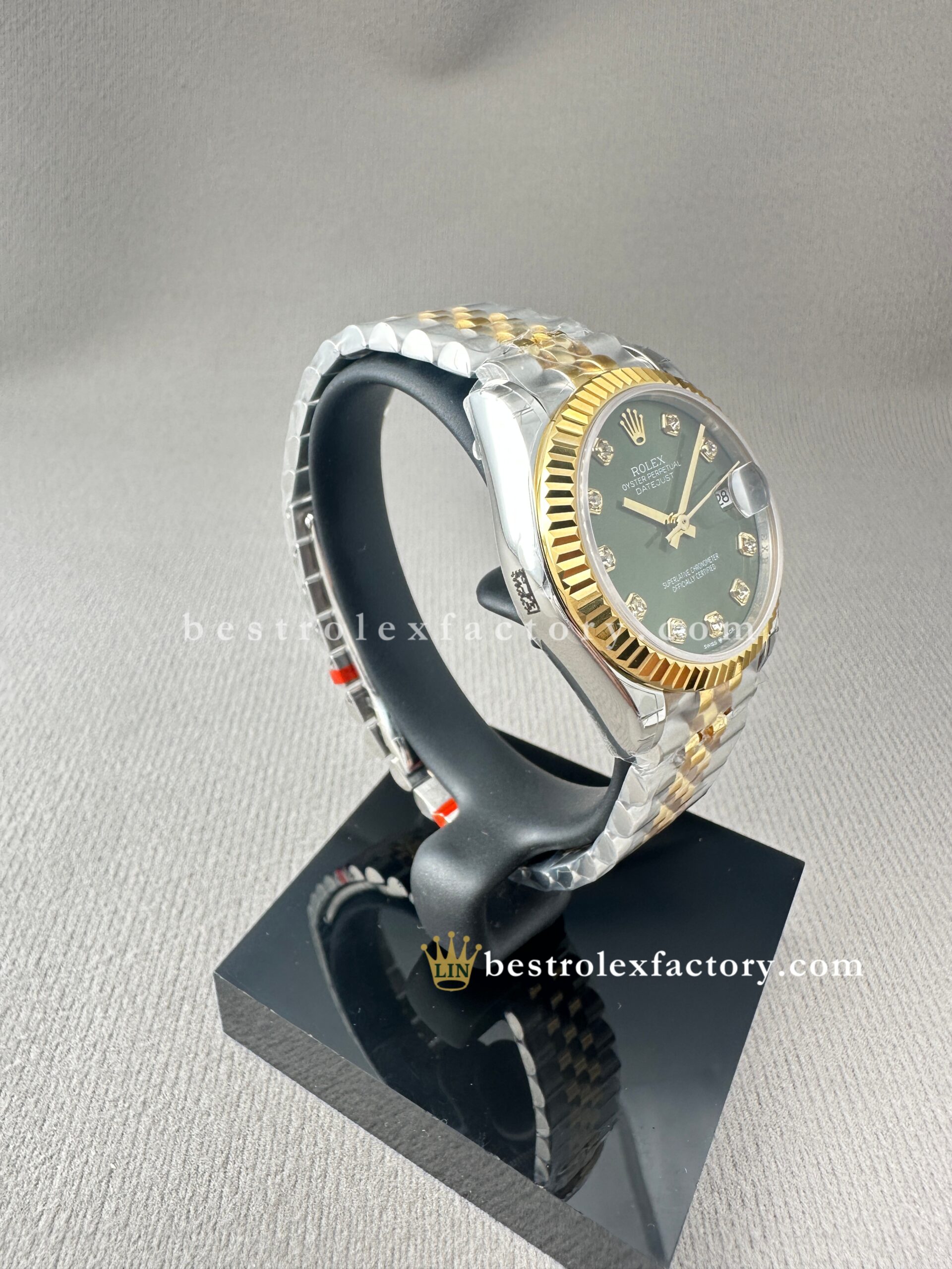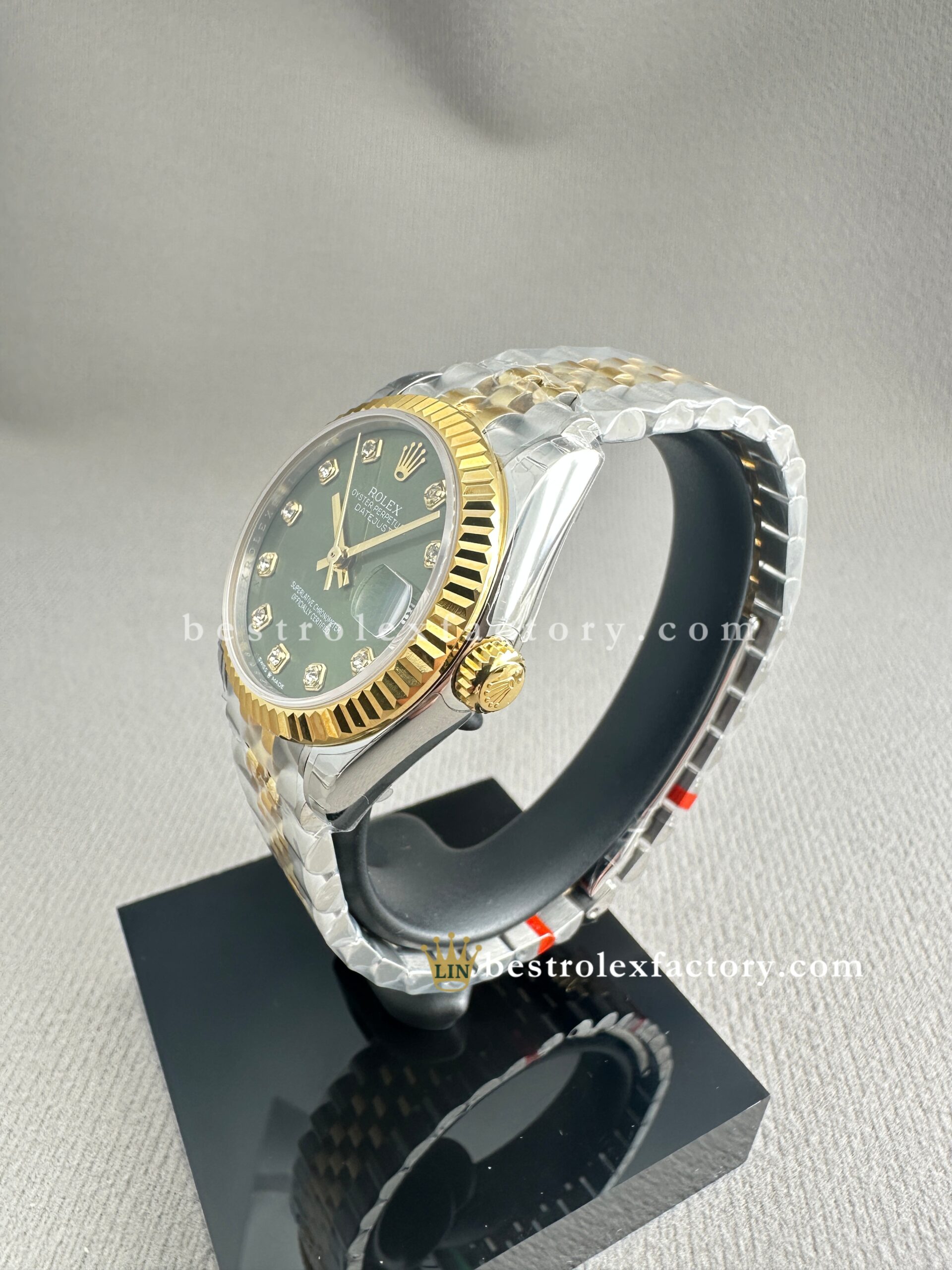 • Clean Factory’s Super Clone Rolex Lady Datejust 278273-0030 offers a beautifully balanced take on luxury, combining a rich olive-green dial with moissanite hour markers in a perfectly scaled 31mm two-tone yellow gold case. This model isn’t simply a downsized version of a larger Datejust—it’s a watch purposefully crafted for the proportions of 31mm, where every design element feels intentional, not shrunken. The result is elegant, understated, and genuinely refined.