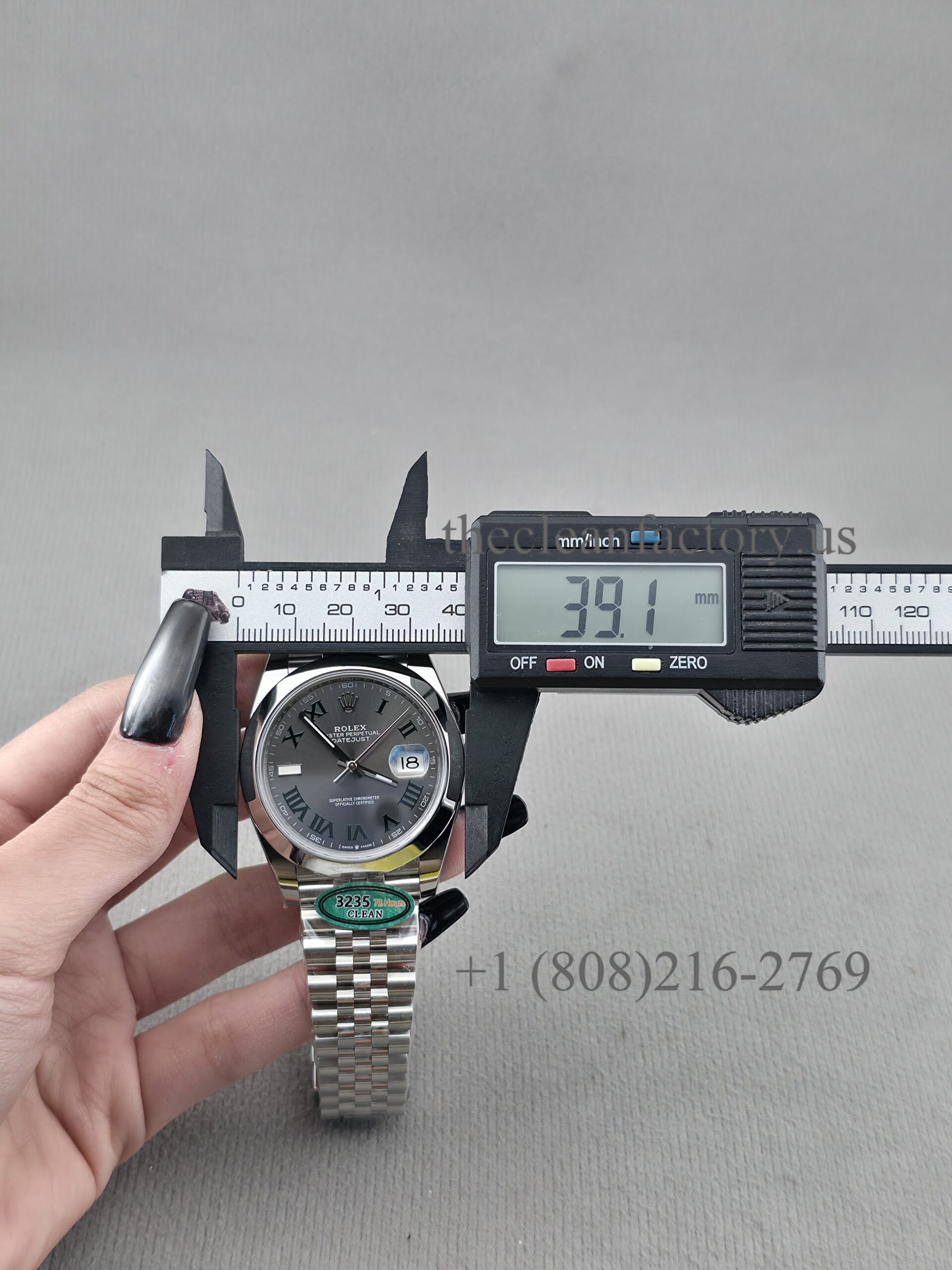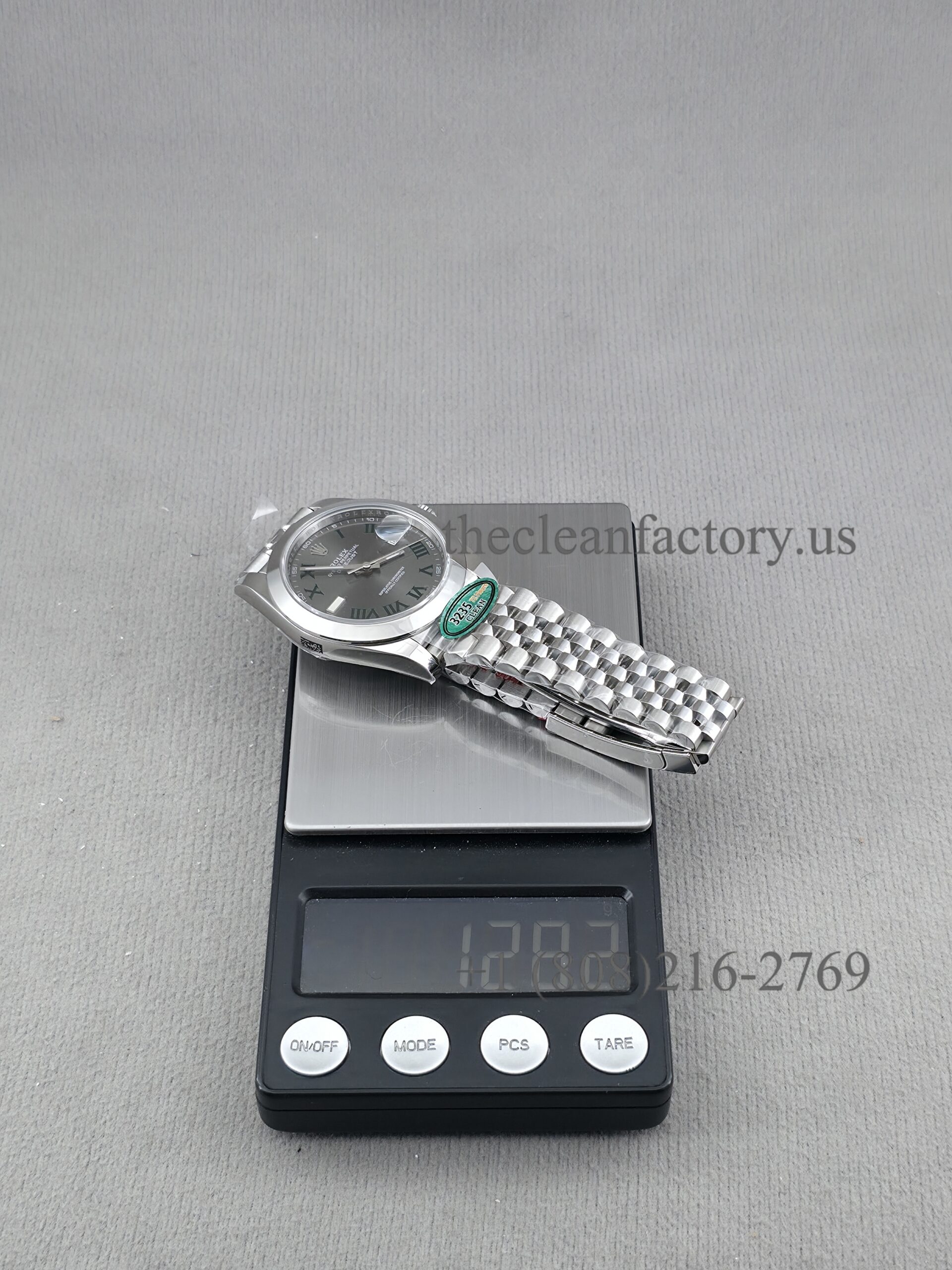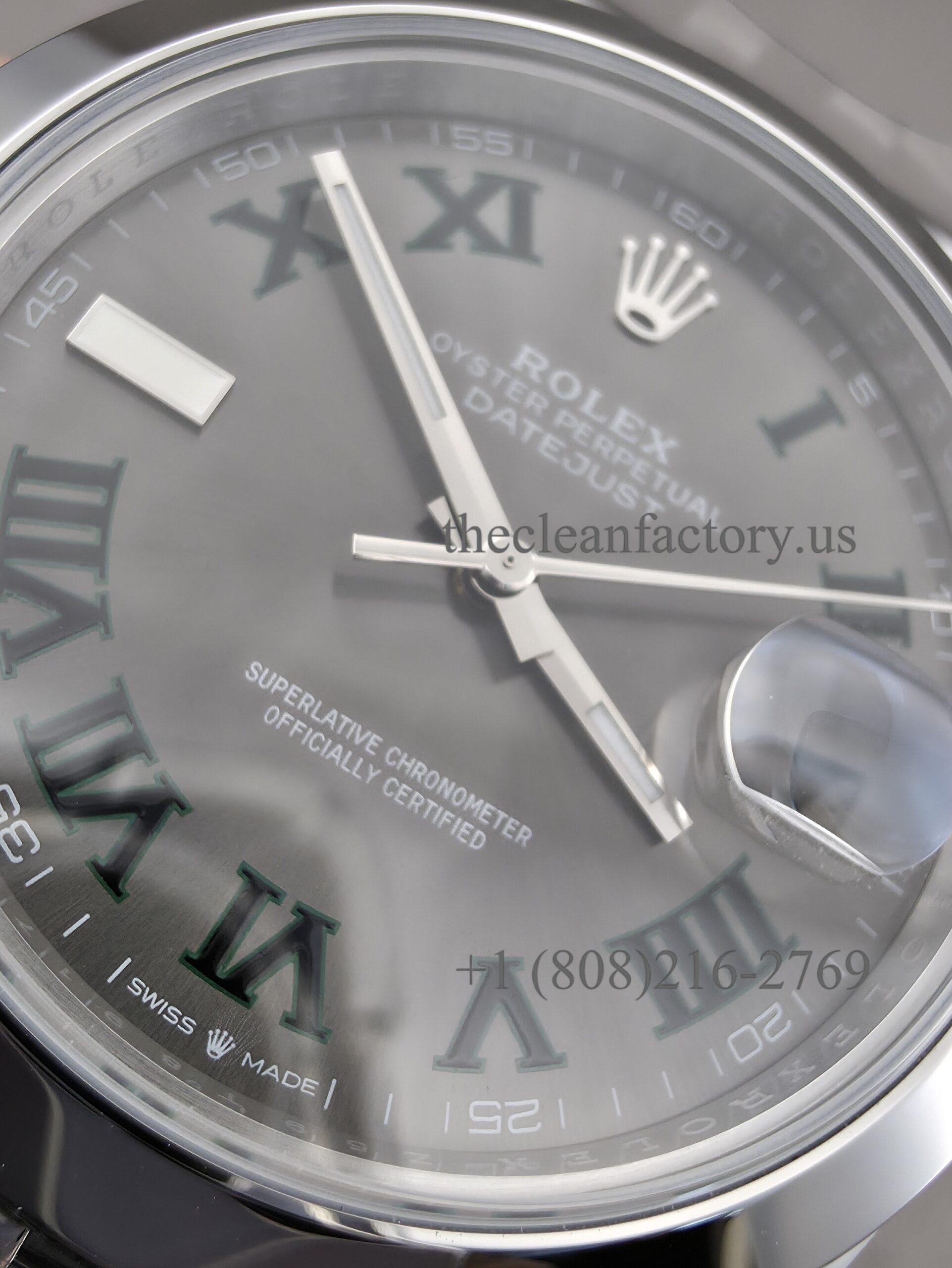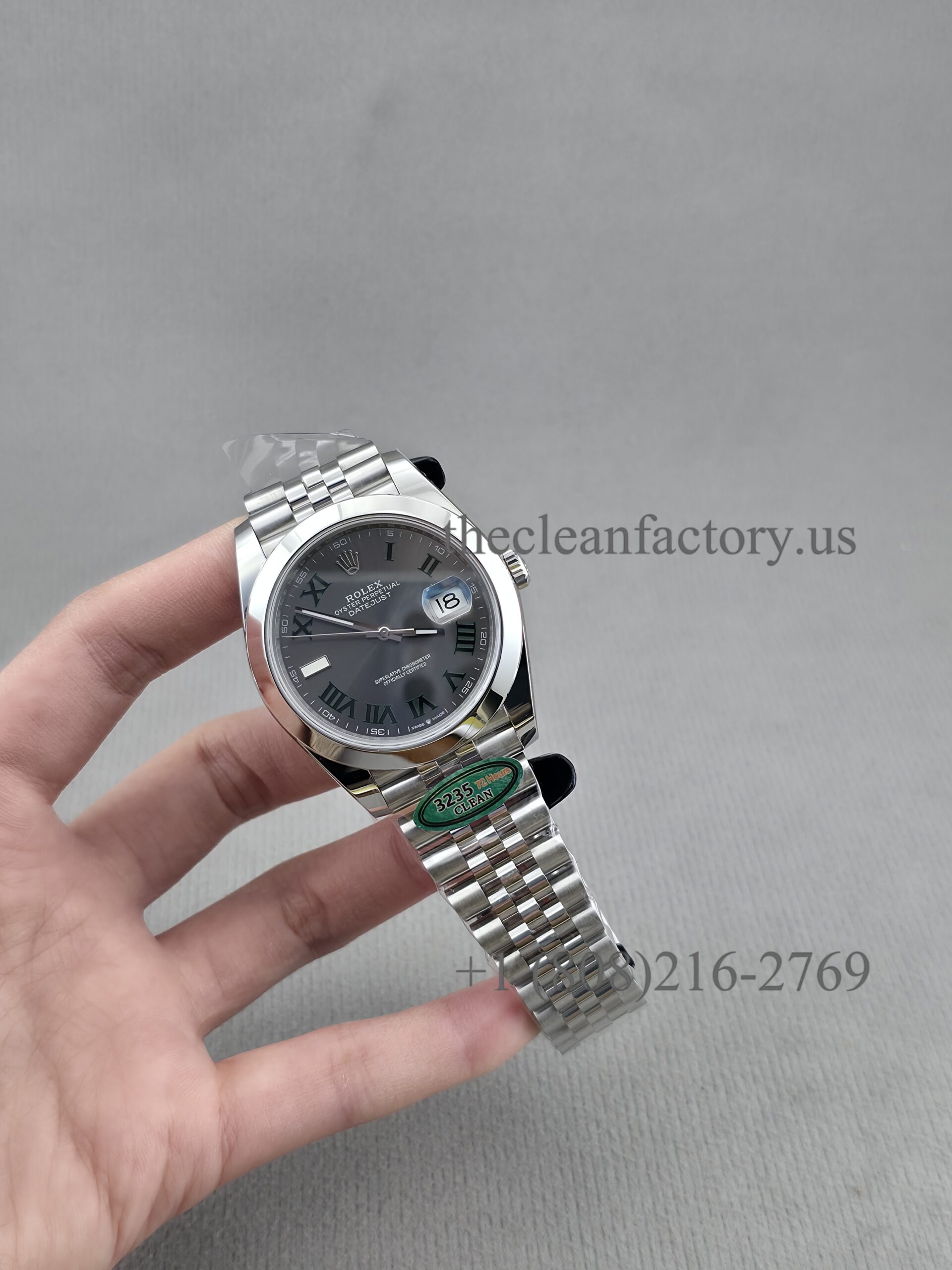 - Clean Factory's Rolex Datejust 126300-0014 with Wimbledon dial and Jubilee bracelet tackles two of the hardest challenges in watch replication simultaneously. Most factories won’t even attempt the Wimbledon dial because getting both the slate grey base and green Roman numerals right requires expensive equipment and techniques they don’t have. Add the Jubilee bracelet’s five-piece link complexity, and you have a combination that separates serious manufacturers from the budget players.