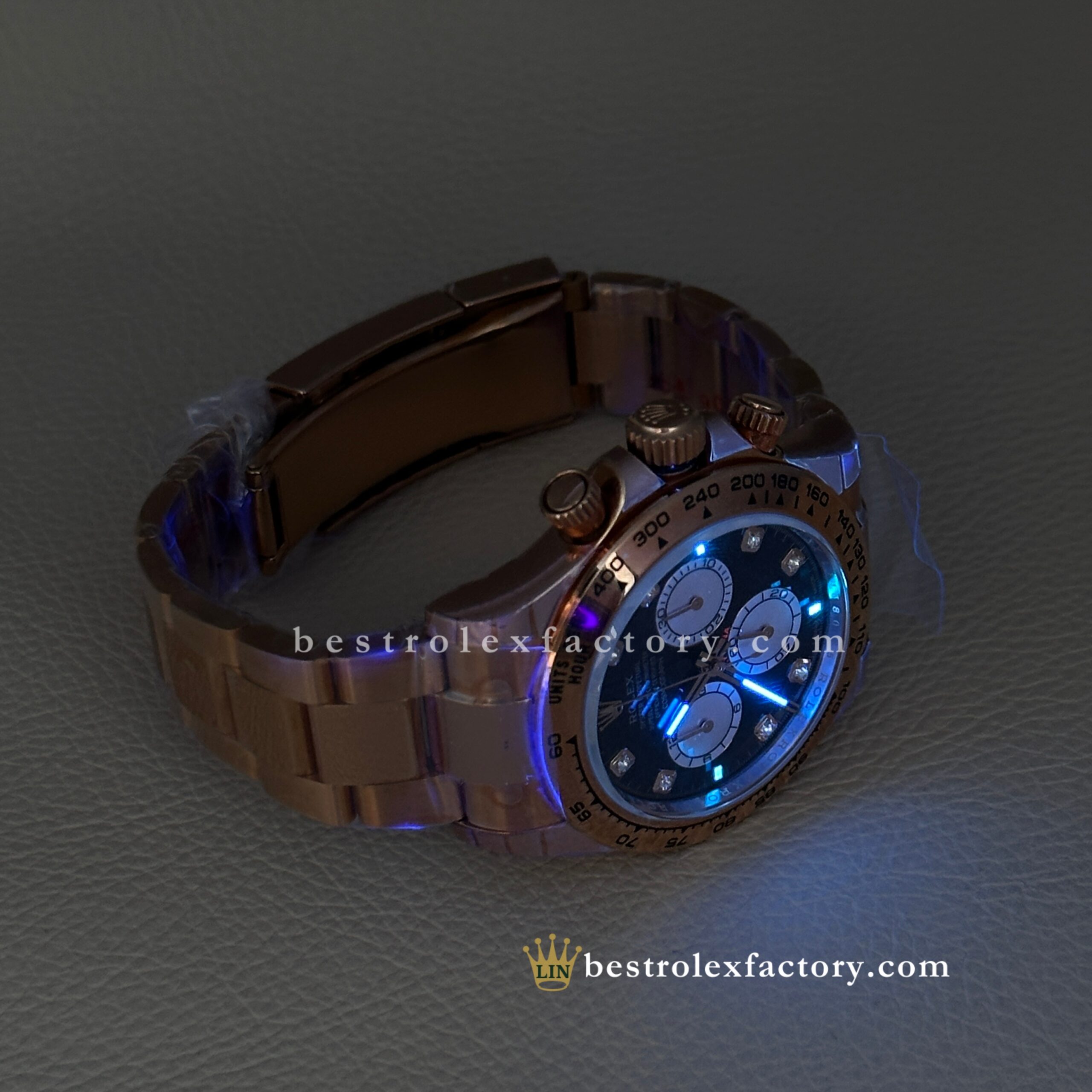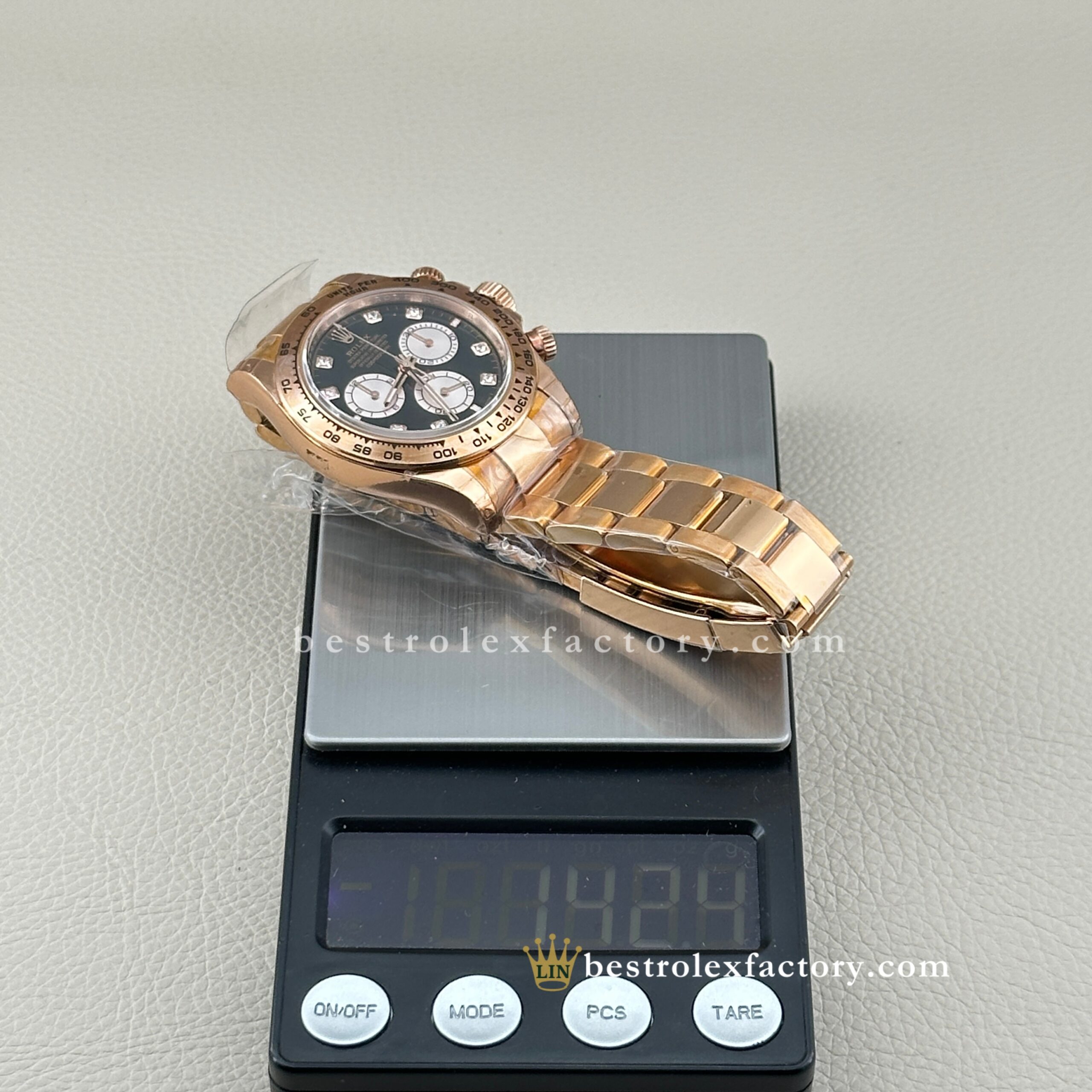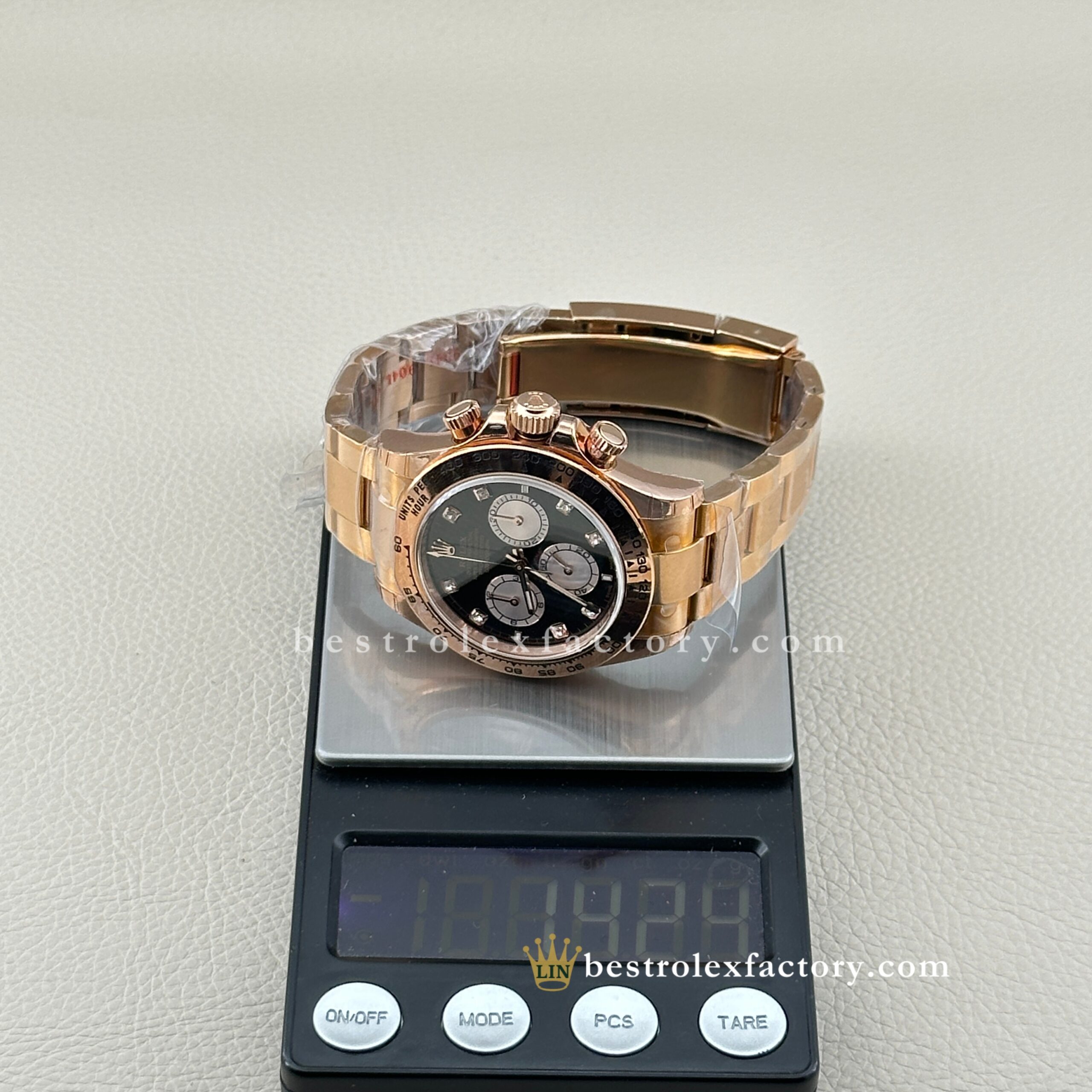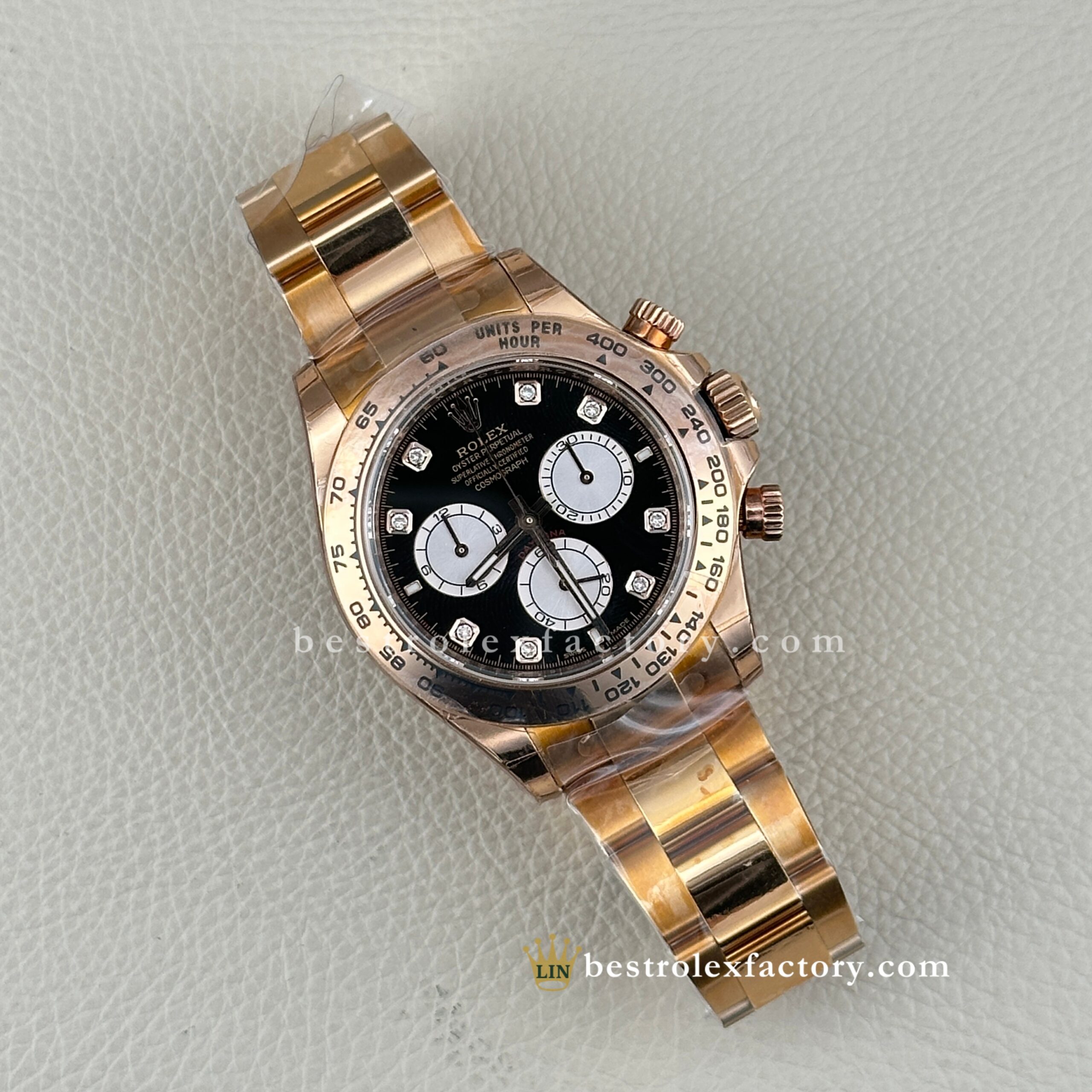 - Clean Factory's Rolex Daytona 126508-0003 represents the pinnacle of yellow gold luxury with a twist. A deep black dial, warm golden subdials, and brilliant moissanite diamond markers create a configuration that blends sporty chronograph functionality with opulent visual drama.