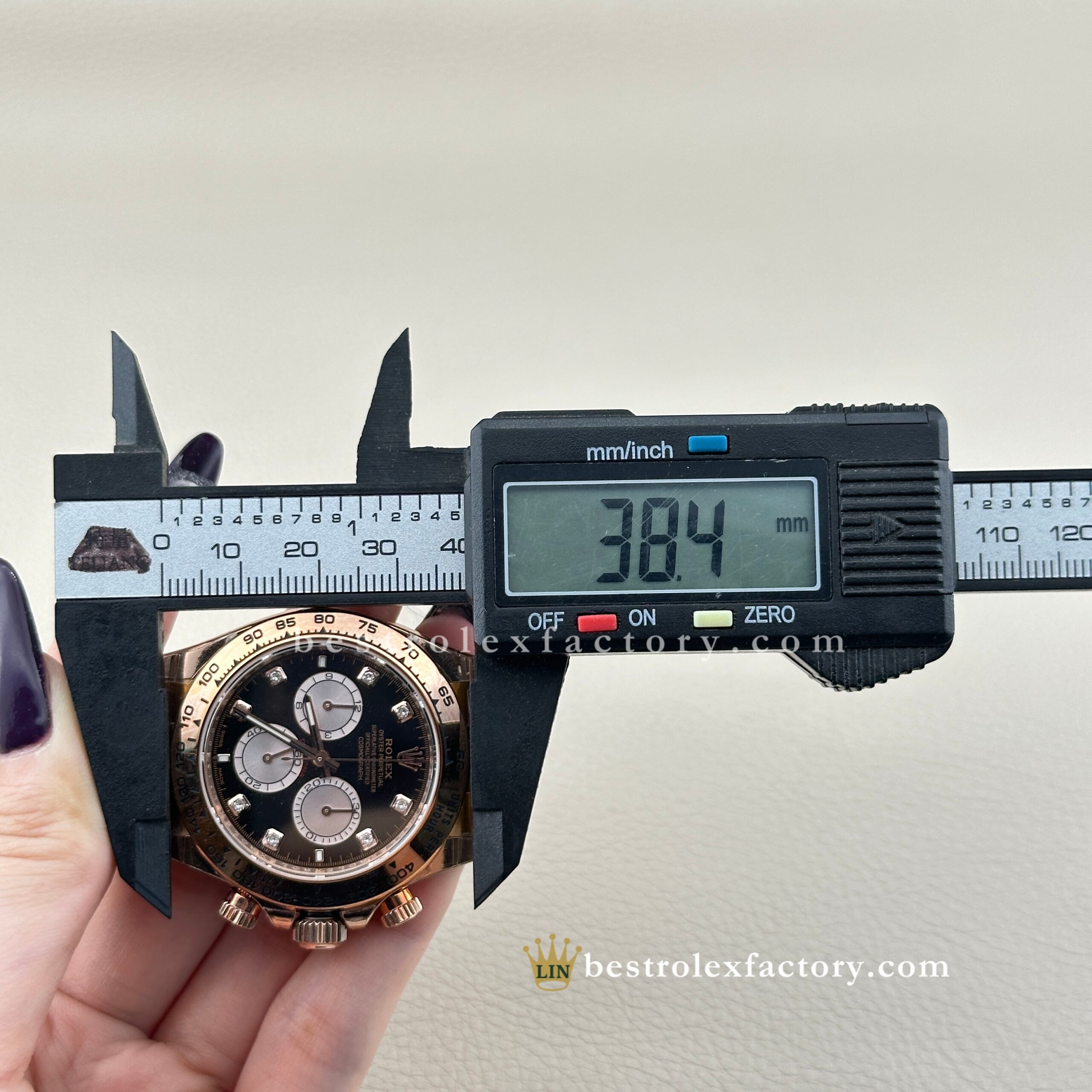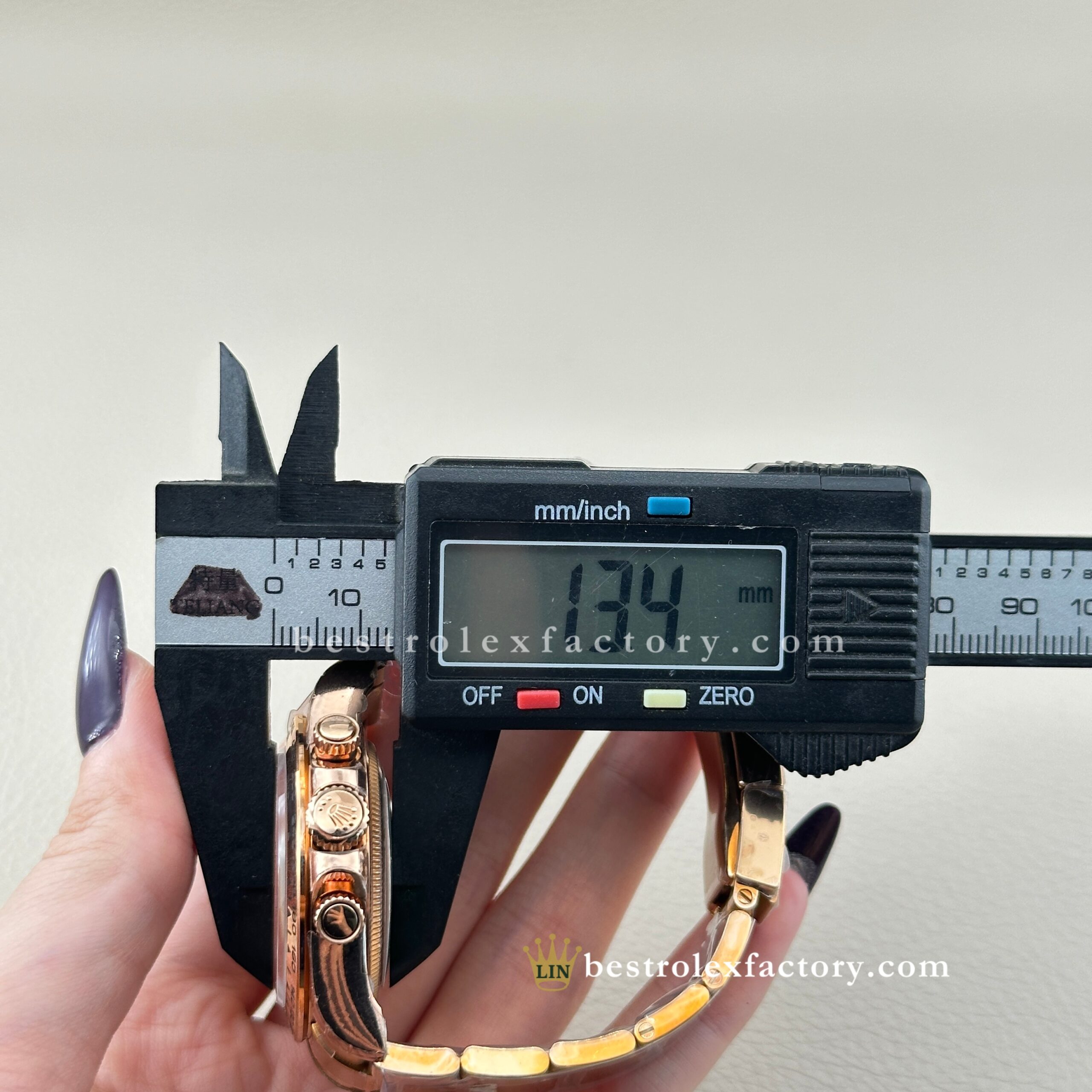 - At 148g, the watch feels substantial without being overbearing. The 40mm case and 12.5mm thickness respect classic Daytona proportions while showcasing Clean Factory’s exceptional finishing—polished bezels, brushed lugs, and flawless transitions between surfaces.