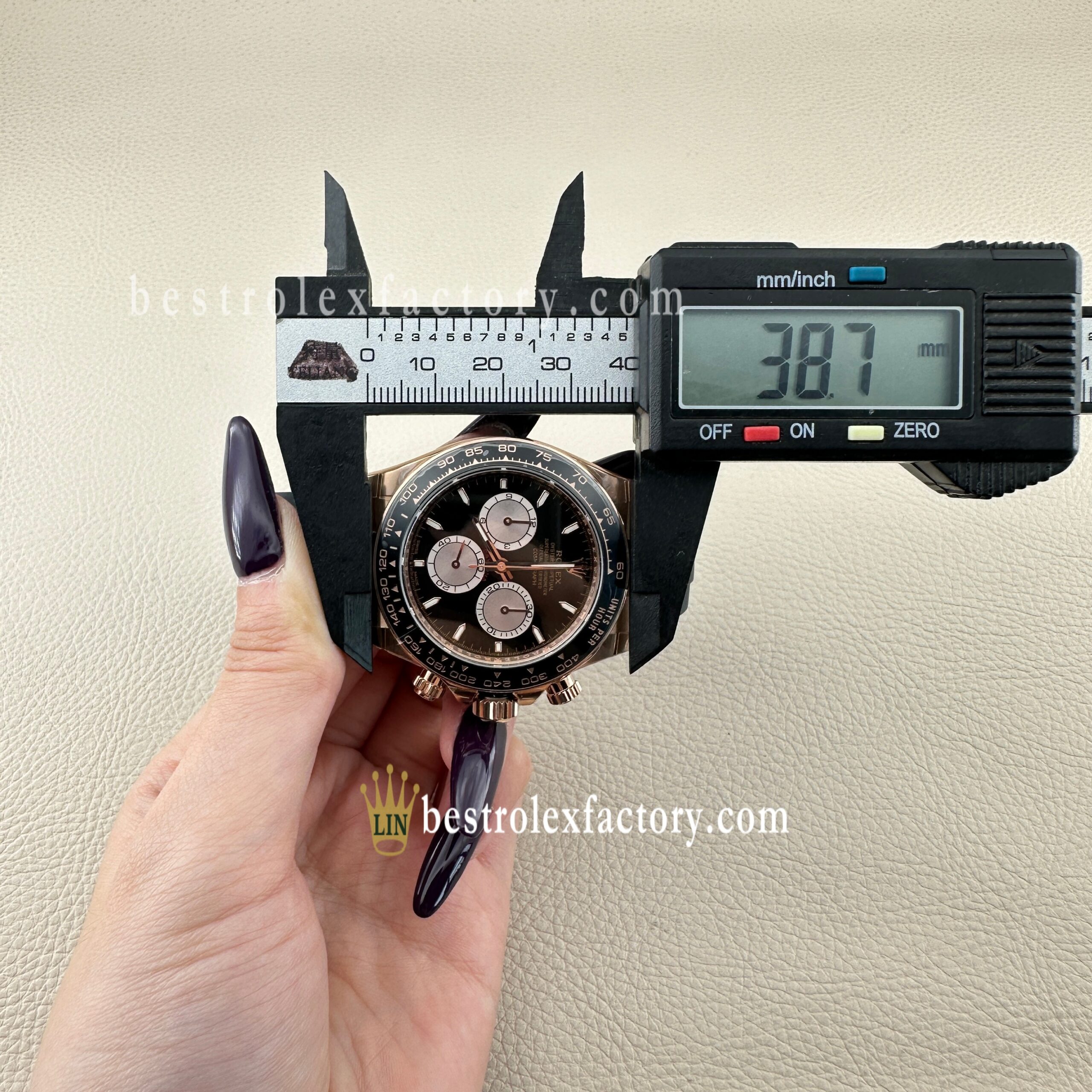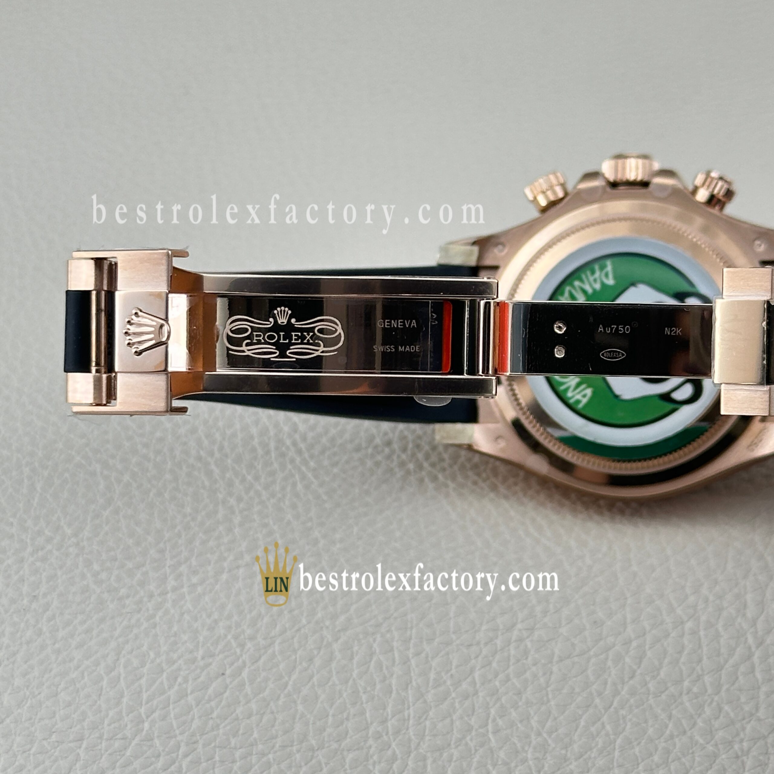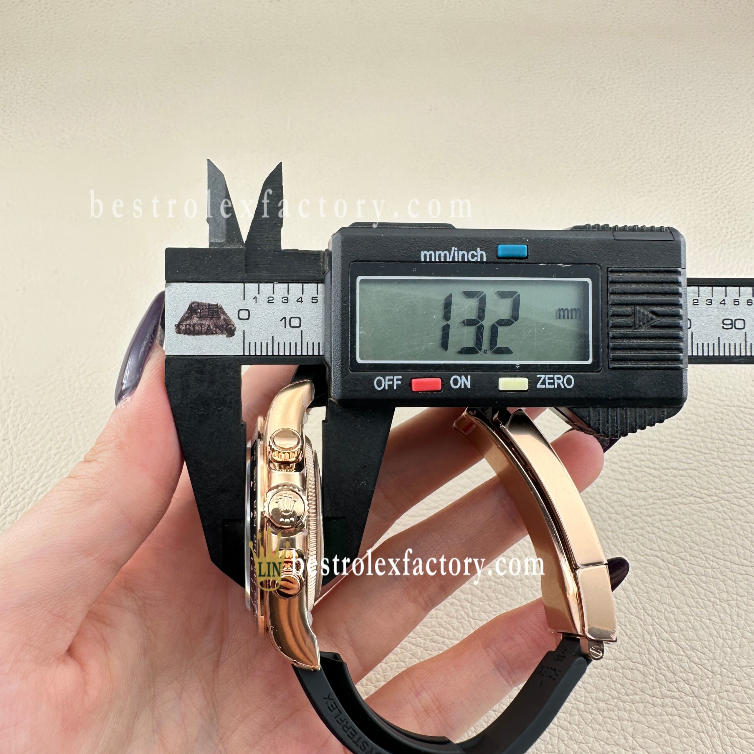 - Here's where Clean Factory has revolutionized warm luxury again — we use premium 18k Everose gold plating throughout with advanced electroplating technology. The case, subdials, hour markers, hands — everything maintains that perfect warm pink-gold tone with superior fade resistance. Most importantly, we maintain proper case dimensions for genuine 4131 movement compatibility, unlike other factories that compromise with tungsten shortcuts that make the watch unnecessarily thick.