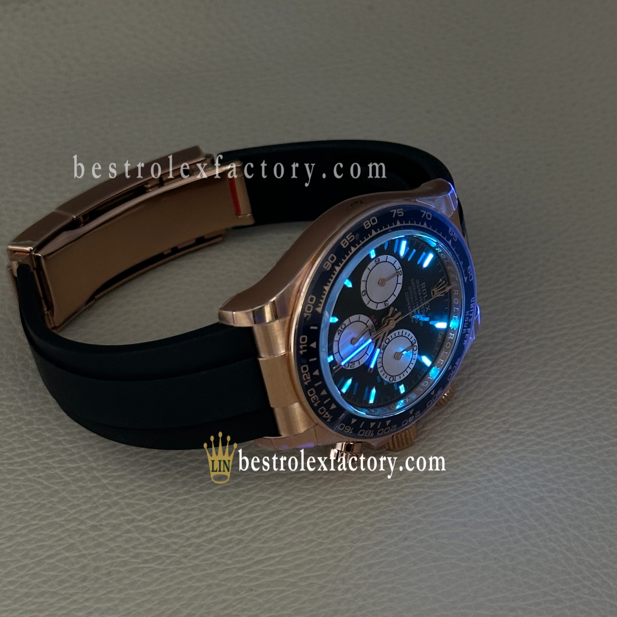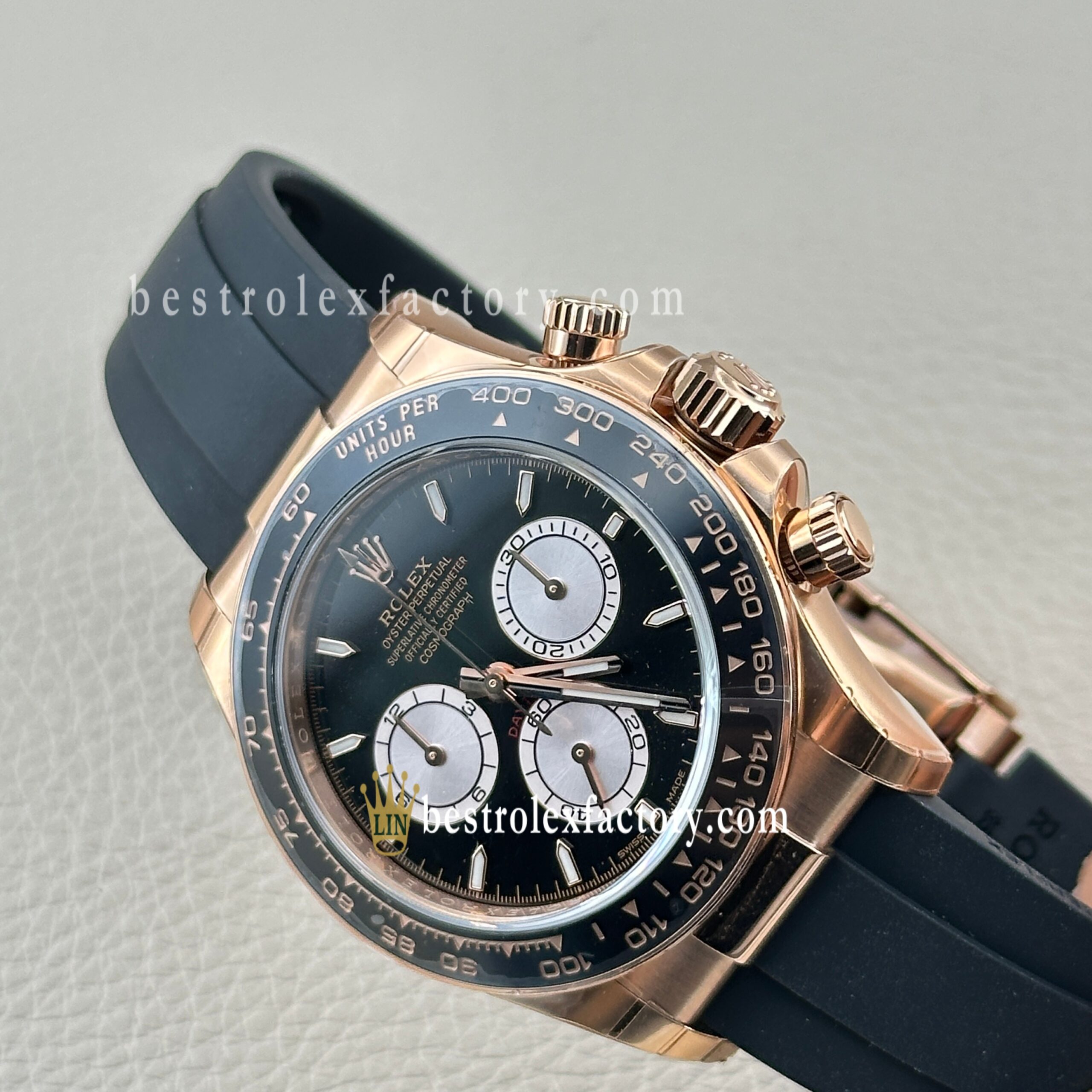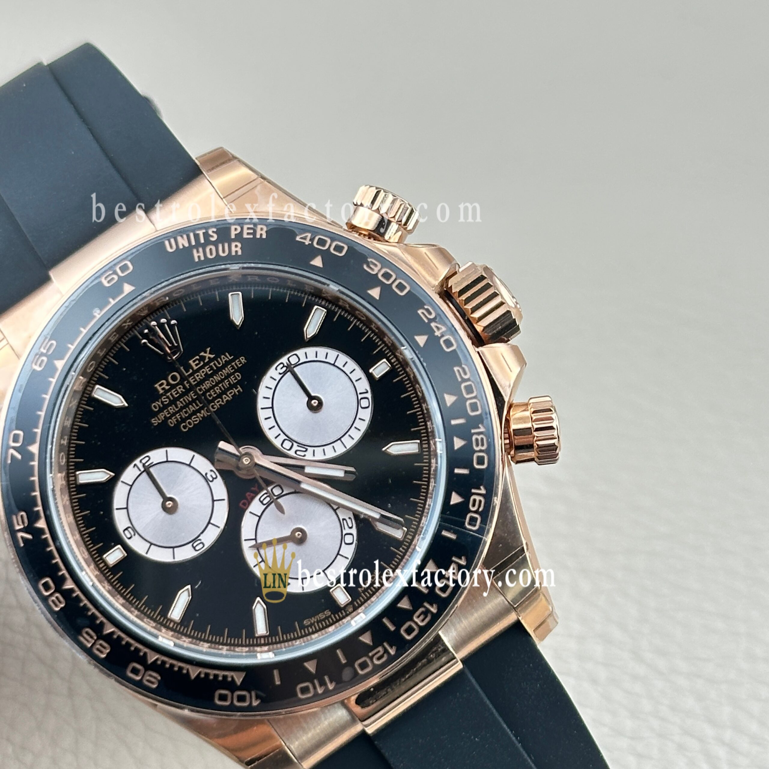 - When sophisticated warmth achieves perfect tonal harmony, something truly magnificent emerges. The Clean Factory 126515LN-0002 "Everose Gold Mastery" isn't just another luxury timepiece — this is the Rolex Daytona that defines what warm sophistication looks like. With that mesmerizing deep black dial beautifully harmonized with warm Everose gold subdials featuring exquisite snailed finishing and commanding 18k Everose gold applique hour markers, this represents the absolute pinnacle of Clean Factory's mastery in warm gold luxury.