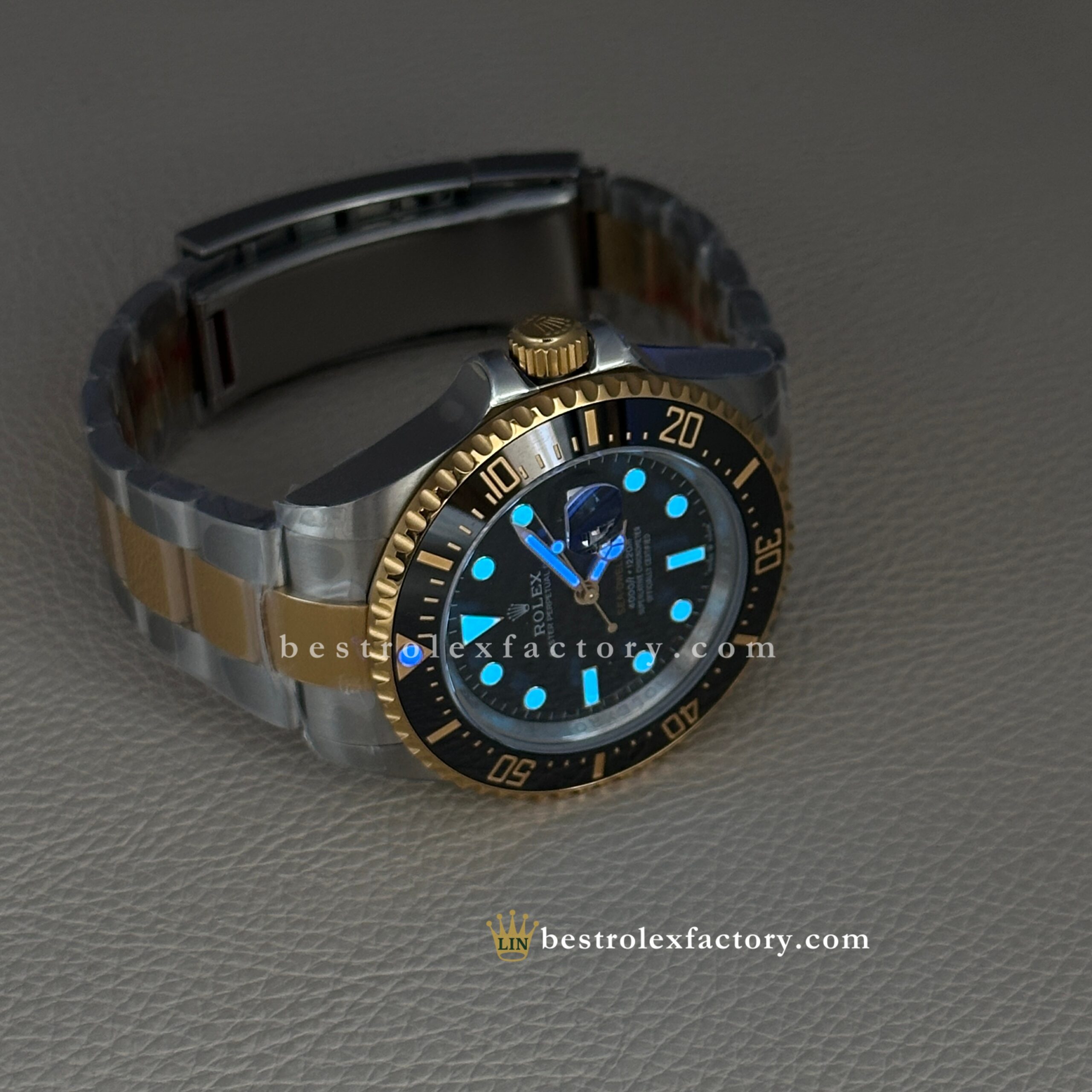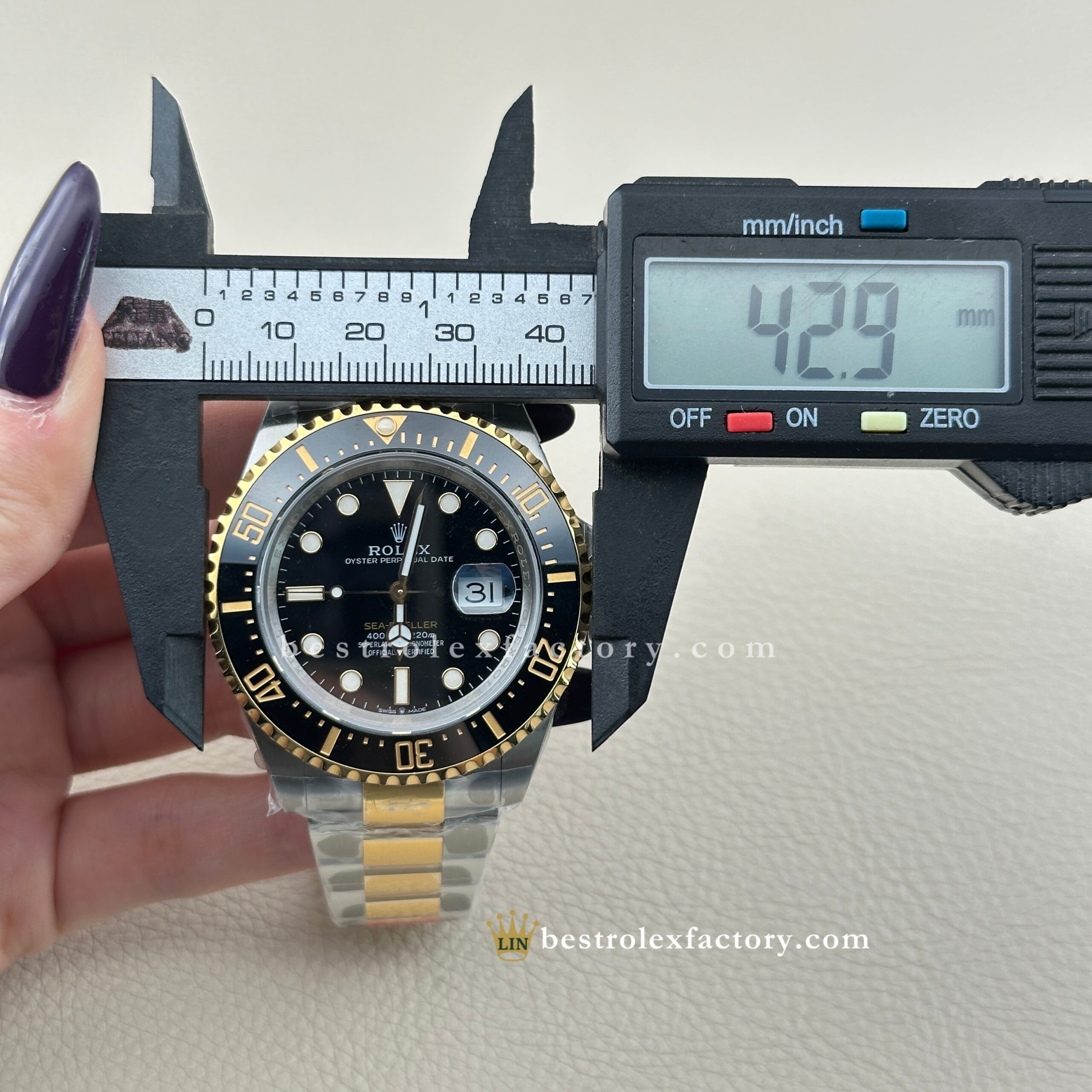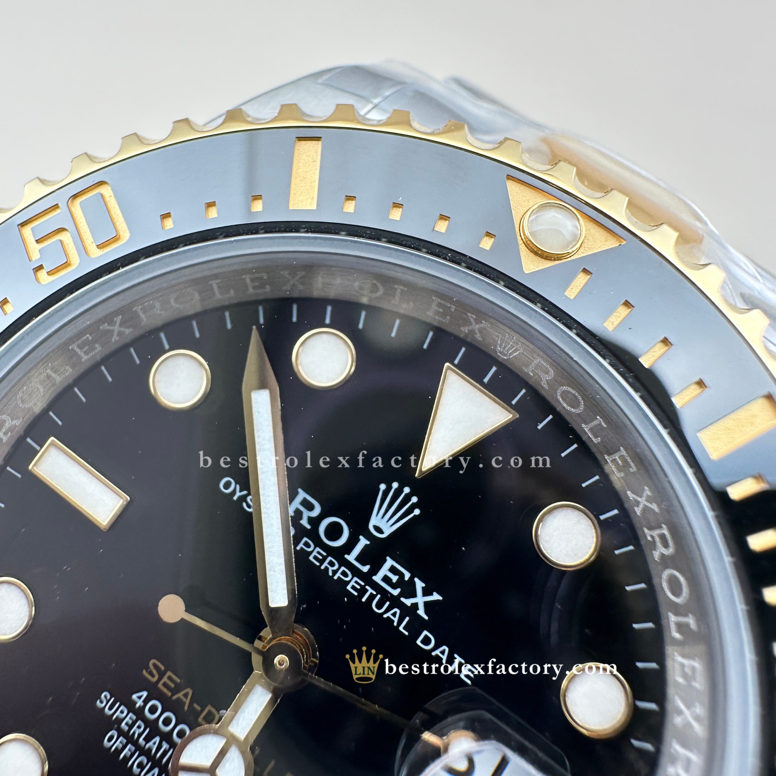 - This two-tone Sea-Dweller proves that professional dive watches can embrace luxury without losing their soul. Clean Factory's perfect execution—from Swiss oil paint creating exact letter shapes to molecular gold bonding ensuring permanent beauty—creates a watch that genuine Rolex owners respect. The super clone 3235 movement delivers authentic performance while the two-tone aesthetic adds warmth to the serious Sea-Dweller platform. At 43mm with perfect proportions and uncompromising quality, this is the Sea-Dweller for those who refuse to choose between function and sophistication.