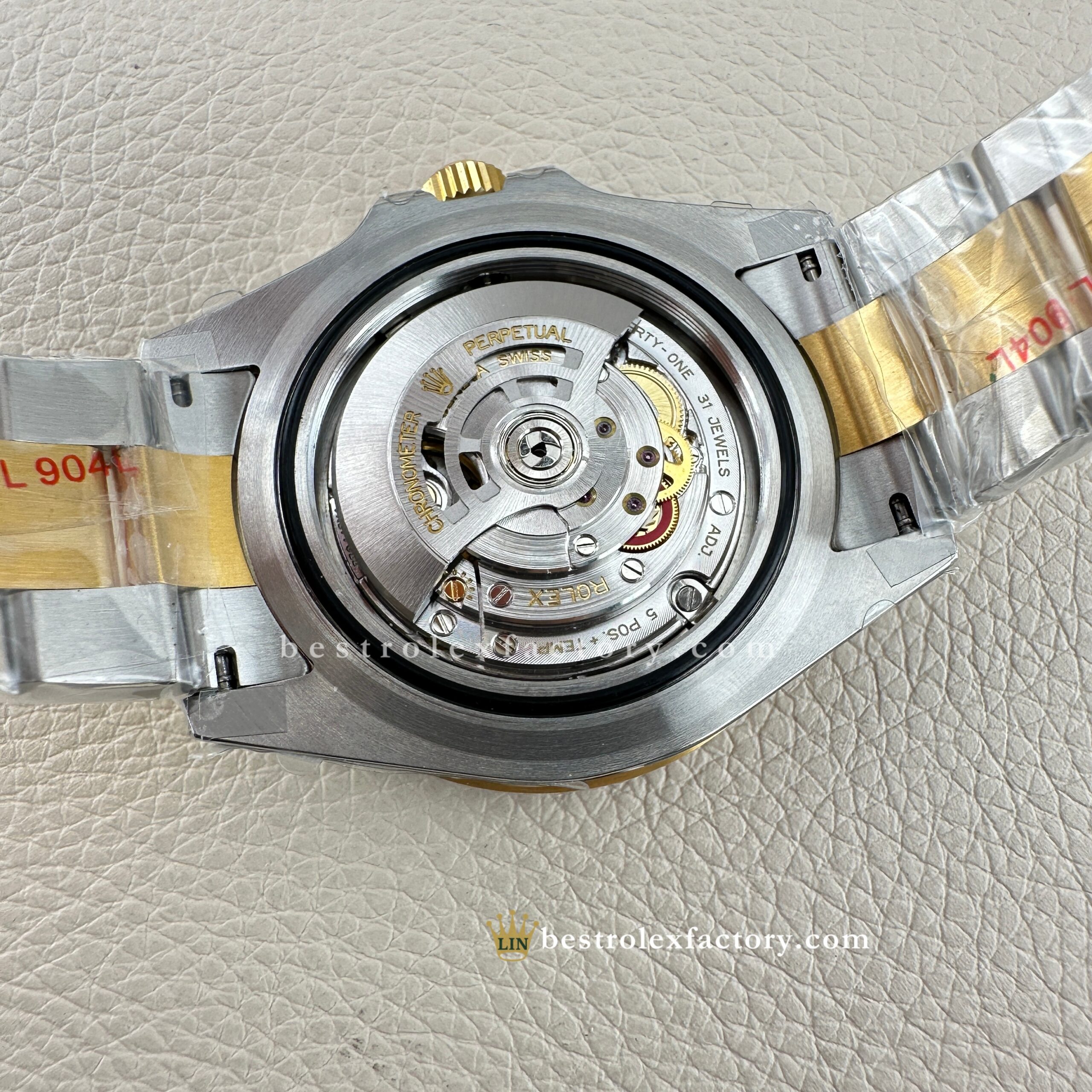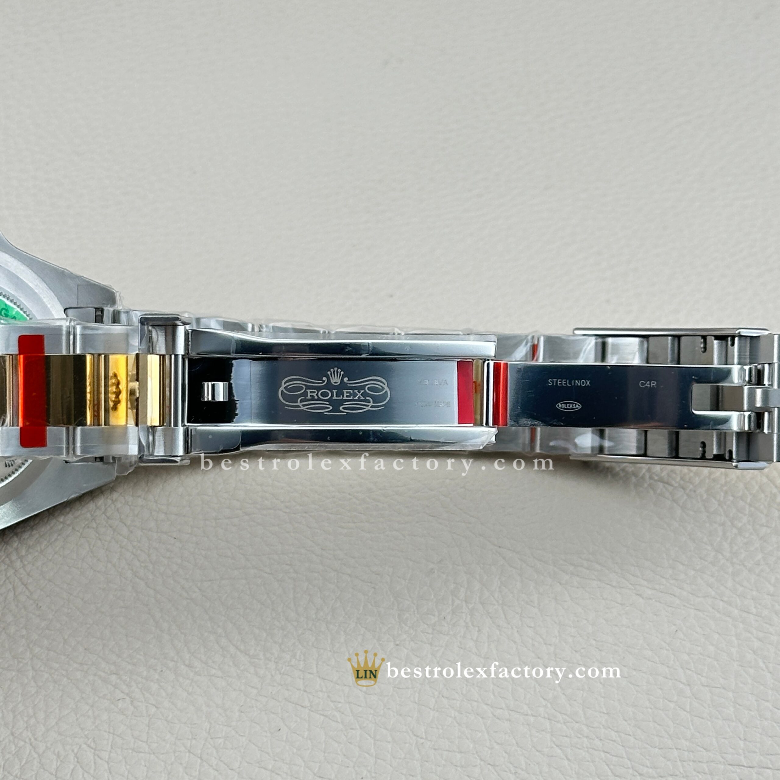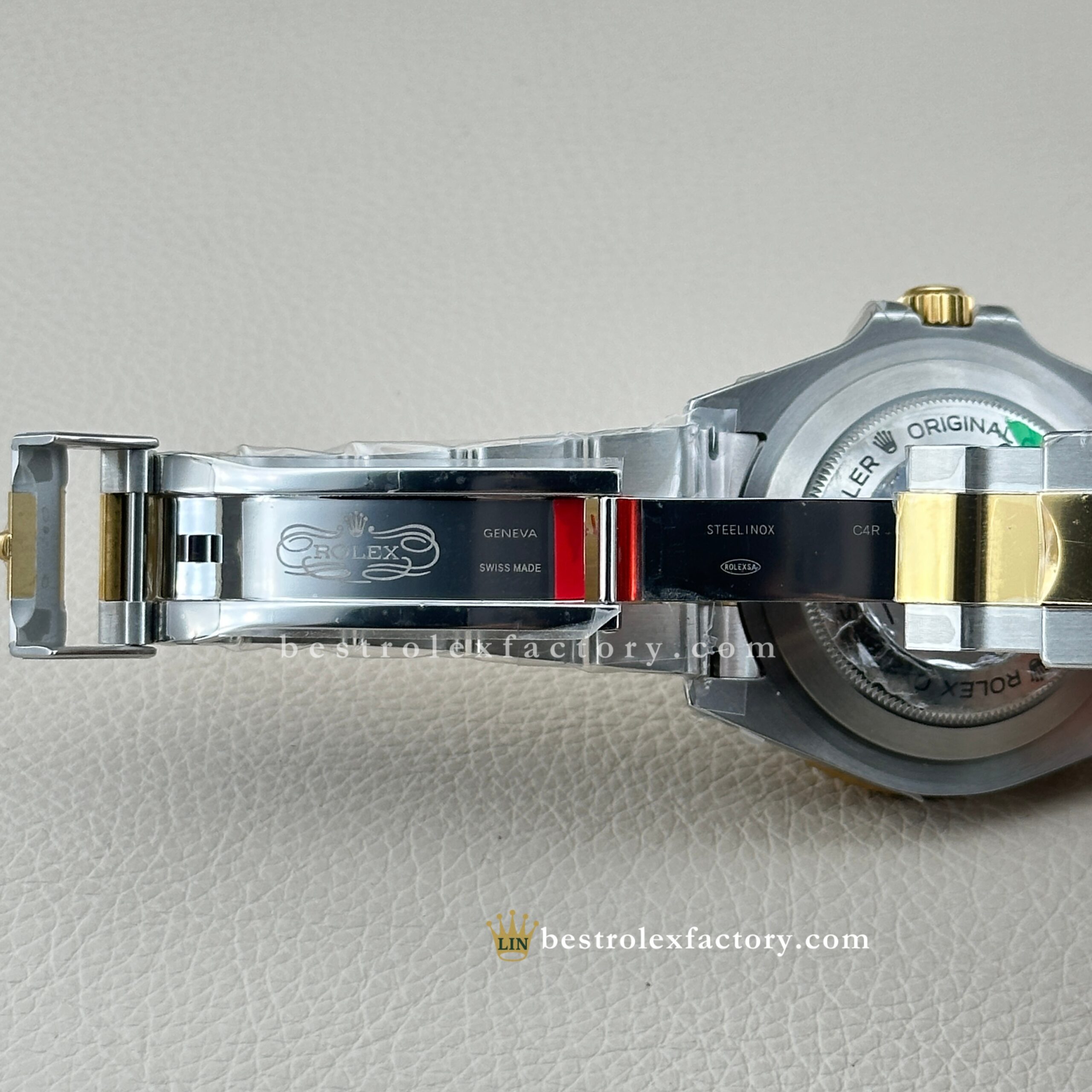 - What makes this two-tone execution special is the restraint. The gold bezel could easily dominate, but Clean Factory calibrated the tone perfectly. It's warm yellow gold that complements rather than competes with the steel. The center links catch light beautifully without being flashy. Even the crown's gold wrapping is executed with precision—proper size, perfect color match, authentic feel when operating.