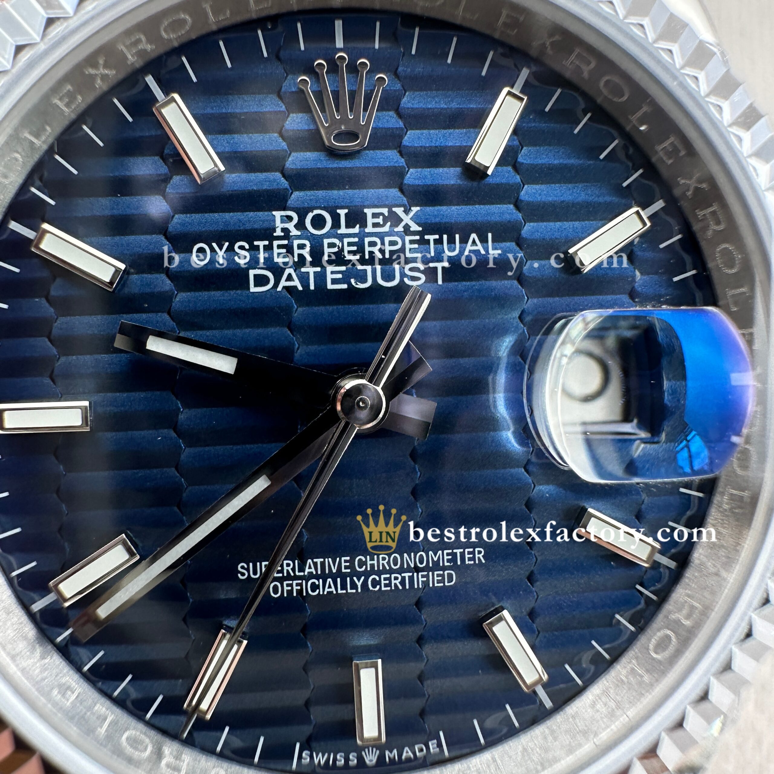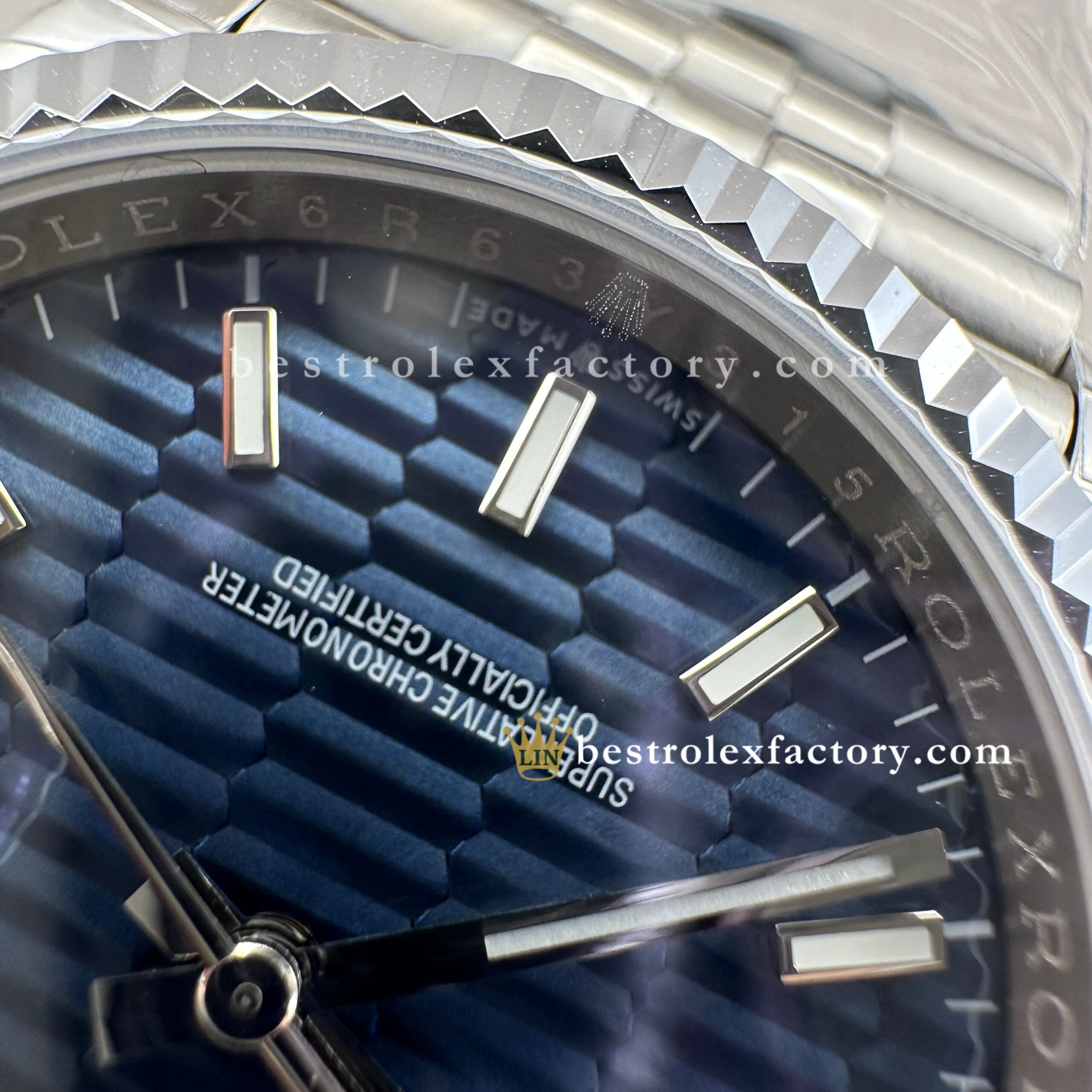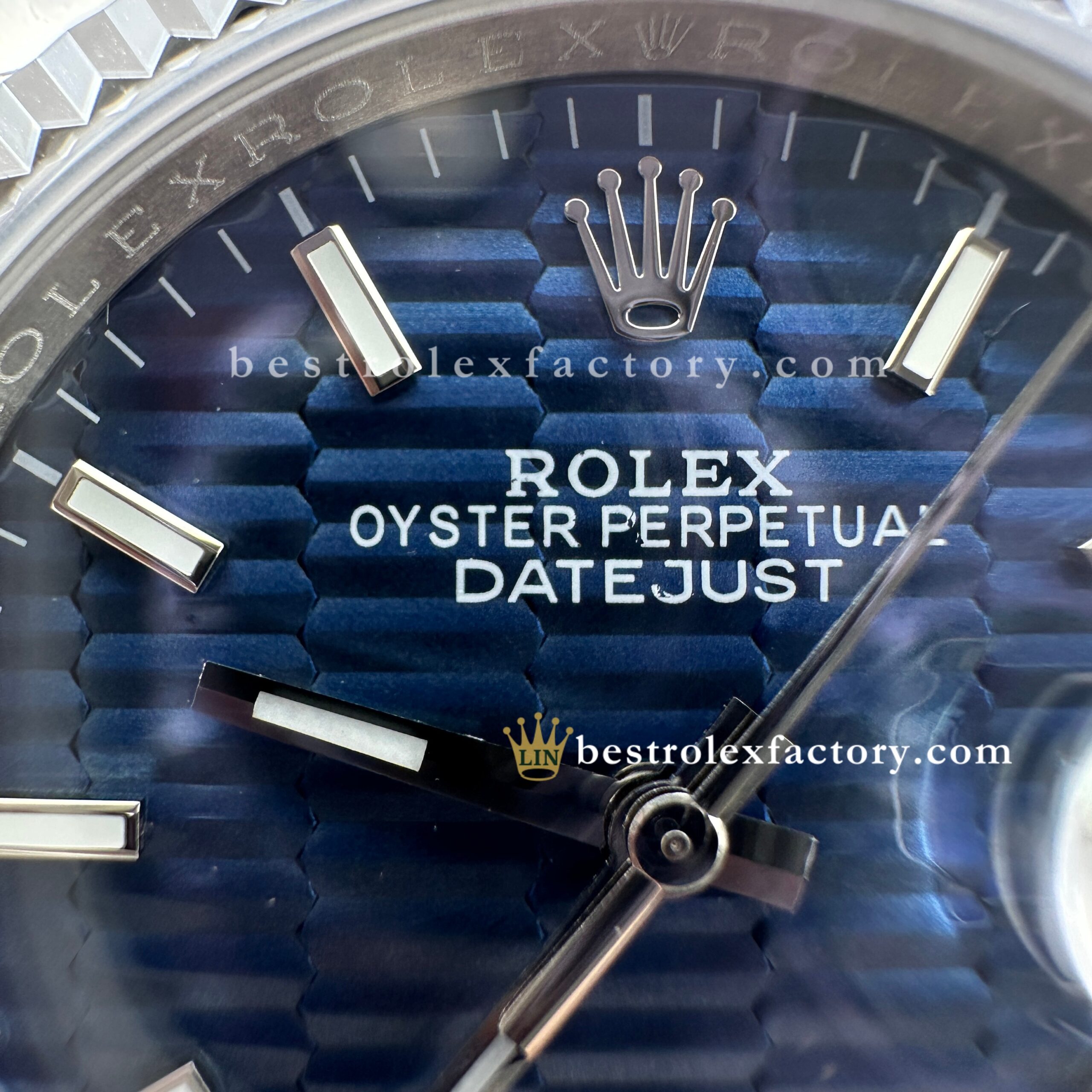 - Set side by side with an authentic blue fluted-motif Datejust, the resemblance is uncanny. The color, texture, and proportions are nearly indistinguishable. Even more impressive, the materials are engineered to stay that way—no fading, no chipping, no telltale wear that exposes lesser clones.