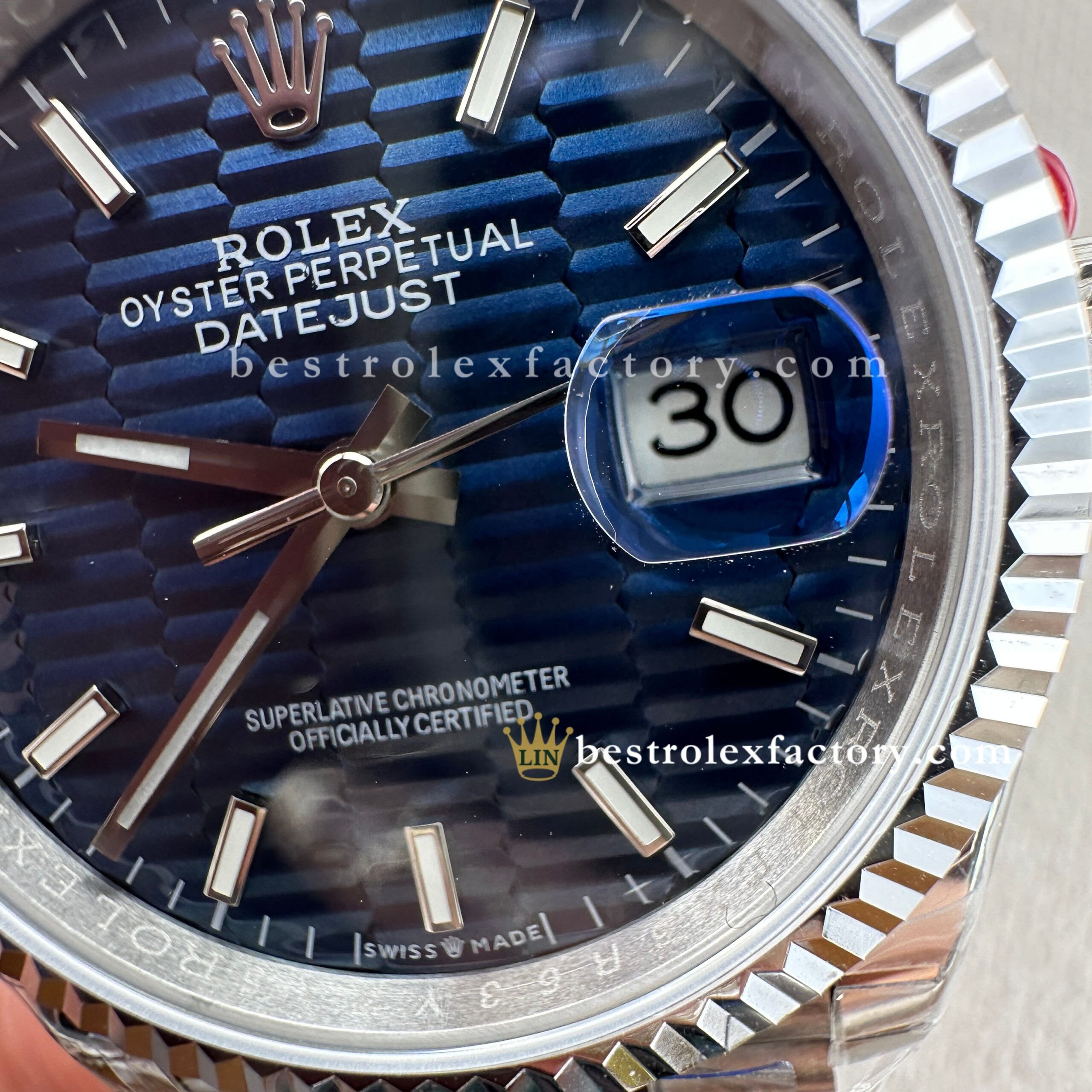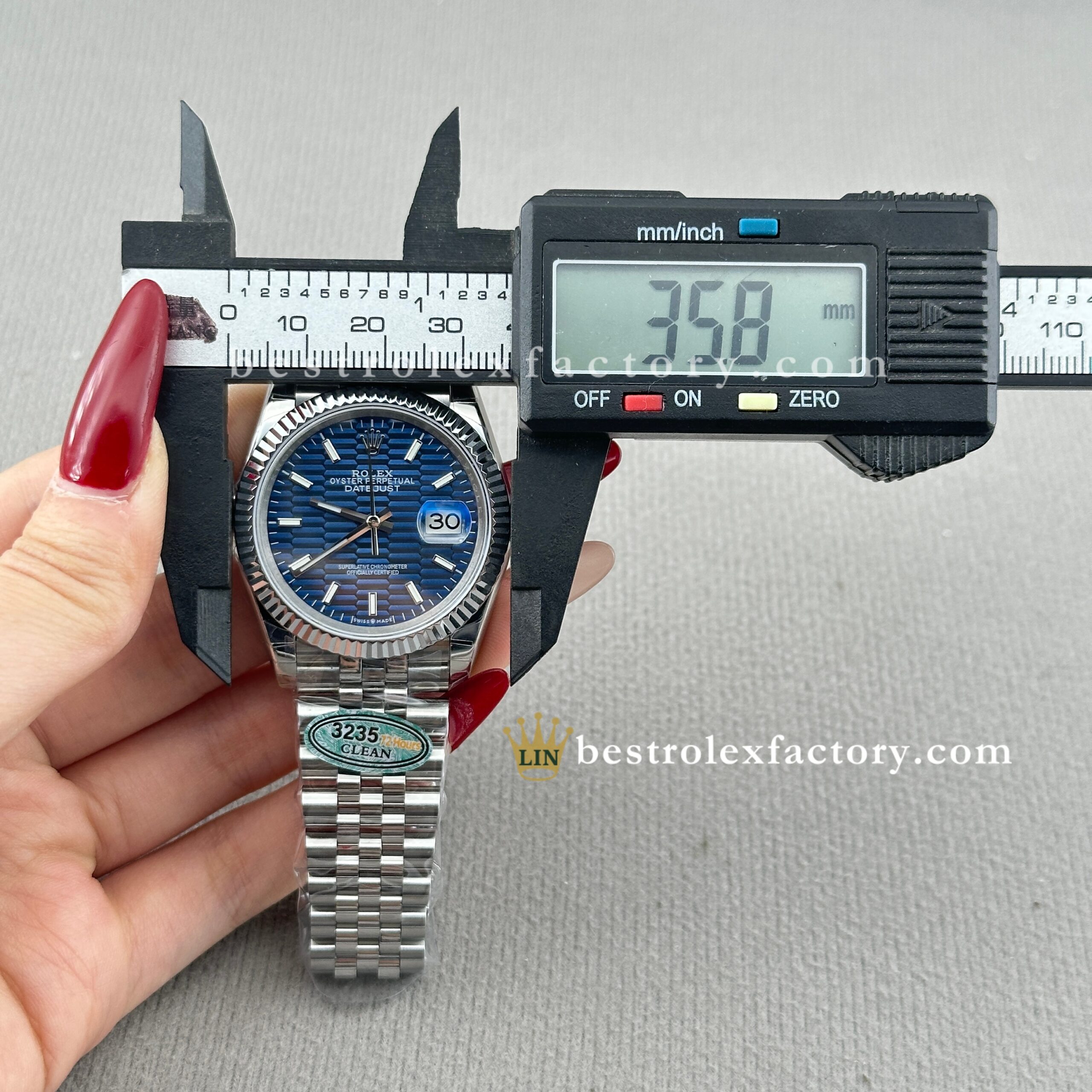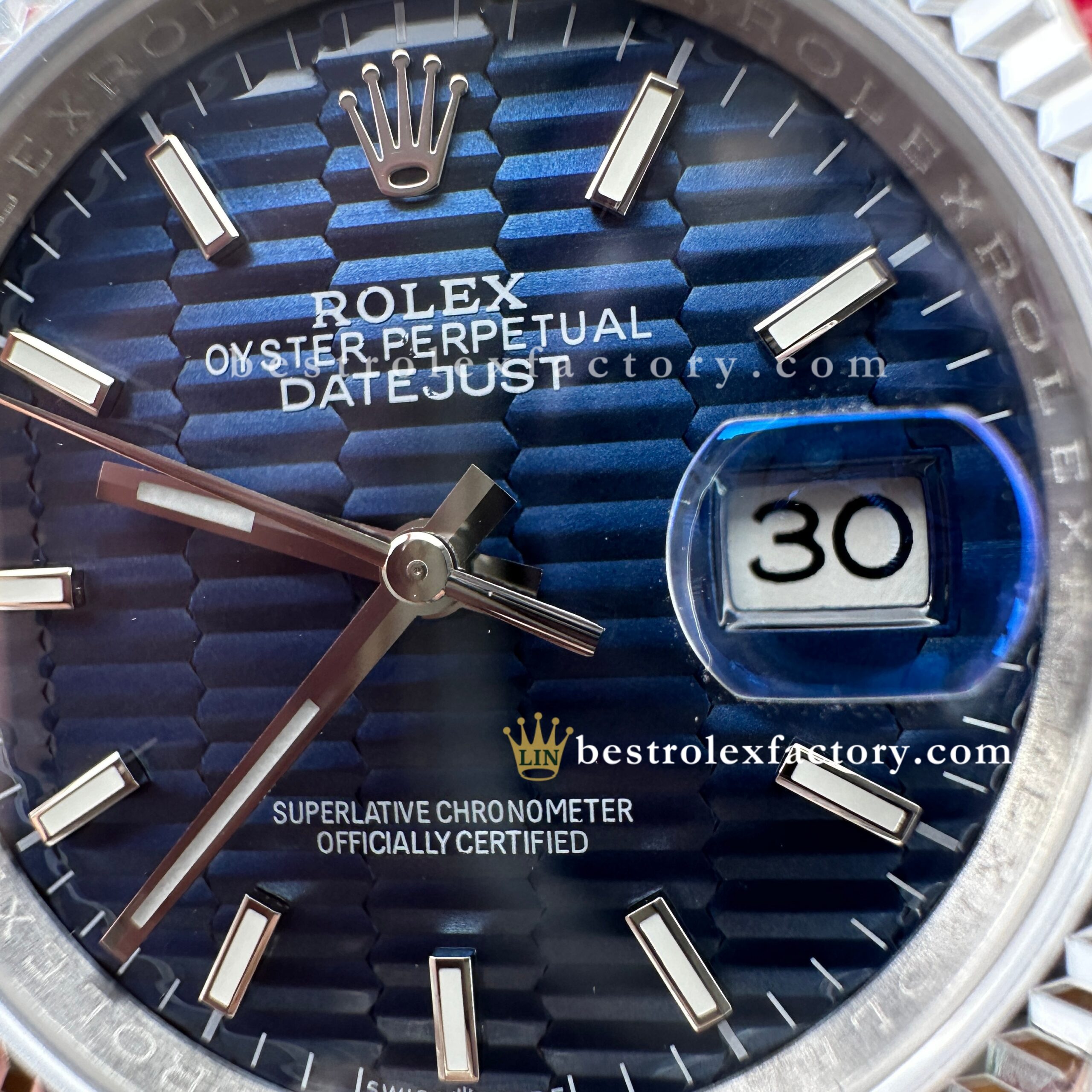 - Set side by side with an authentic blue fluted-motif Datejust, the resemblance is uncanny. The color, texture, and proportions are nearly indistinguishable. Even more impressive, the materials are engineered to stay that way—no fading, no chipping, no telltale wear that exposes lesser clones.