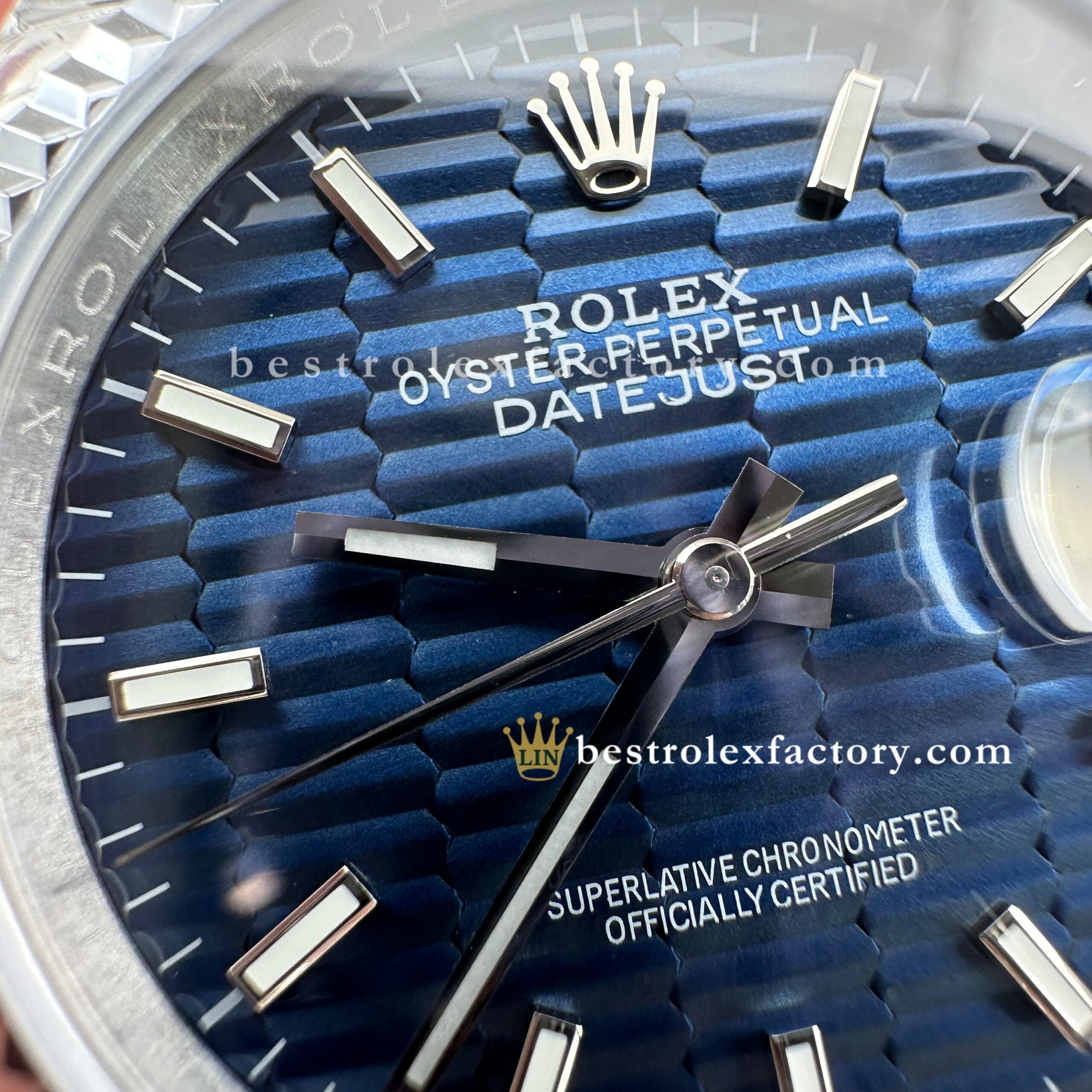 - Clean Factory’s Super Clone Datejust 126234-0049 pairs the extraordinary blue fluted-motif dial with a Jubilee bracelet in a perfectly sized 36mm case—creating one of the most technically sophisticated combinations Rolex has ever produced. This isn’t simply color meeting texture. It’s three-dimensional artistry that elevates dial-making into architectural sculpture. Where most replica attempts fail outright, Clean Factory achieves an uncanny level of authenticity. Set it beside the genuine article and you’ll see how advanced engineering makes the impossible look effortless.