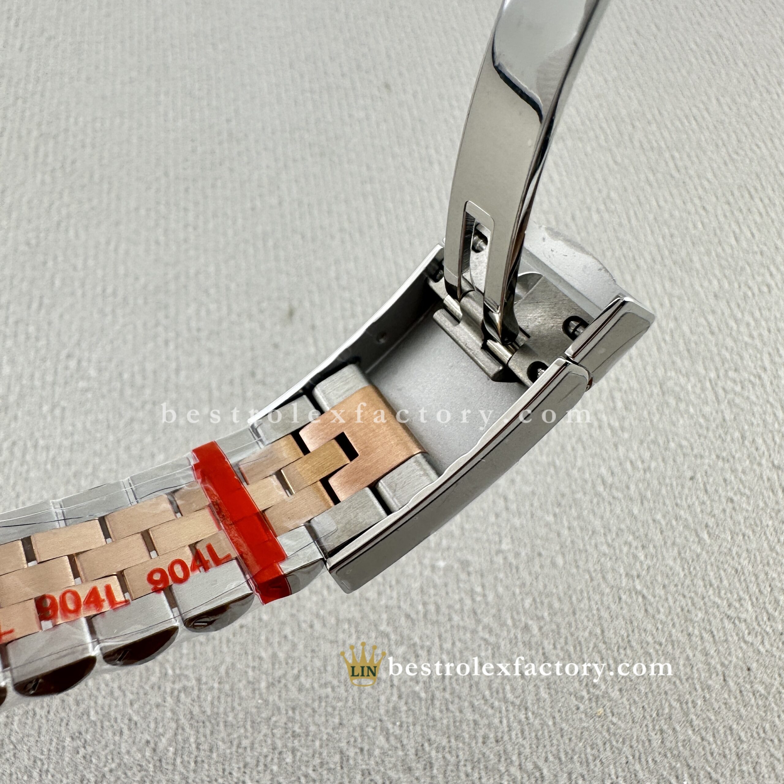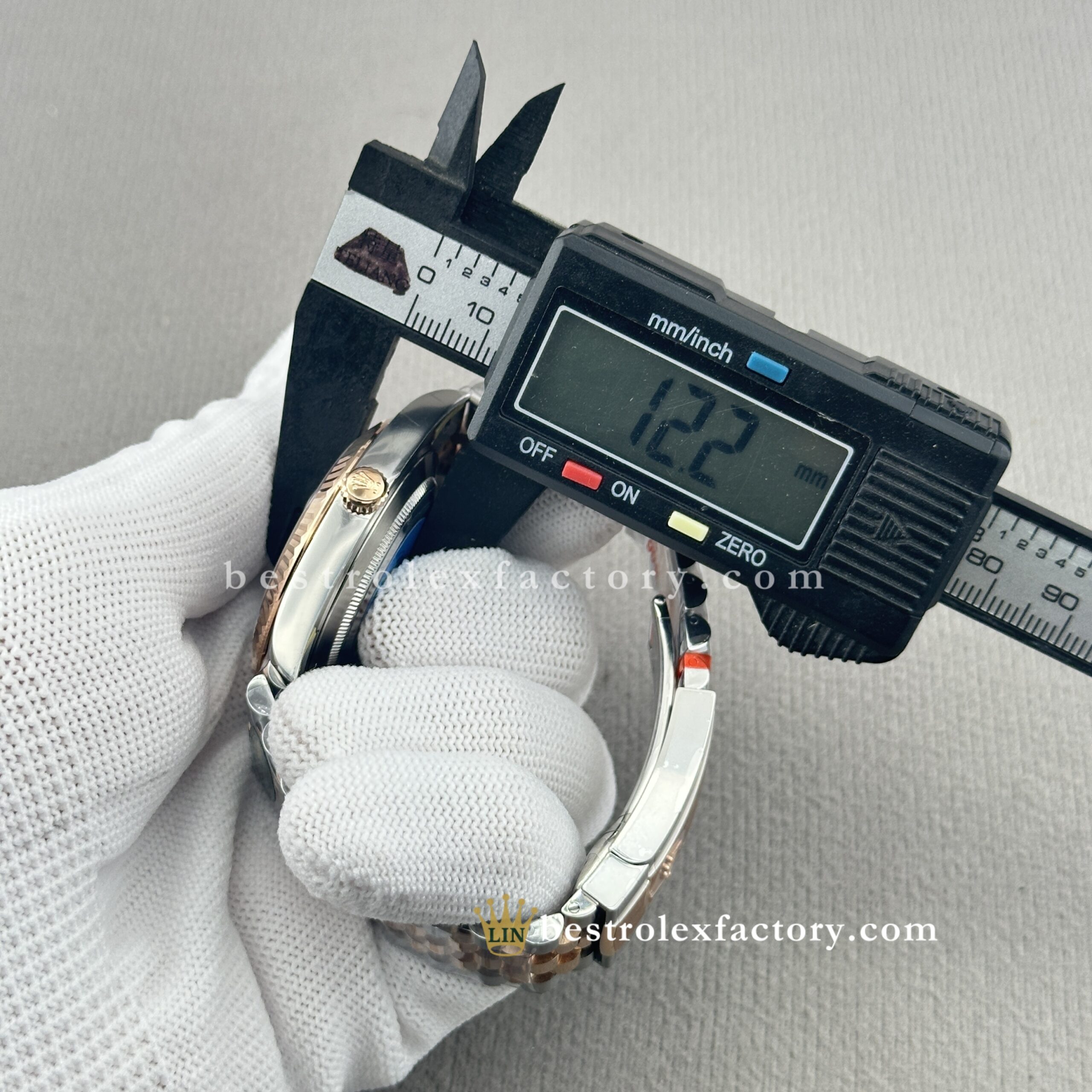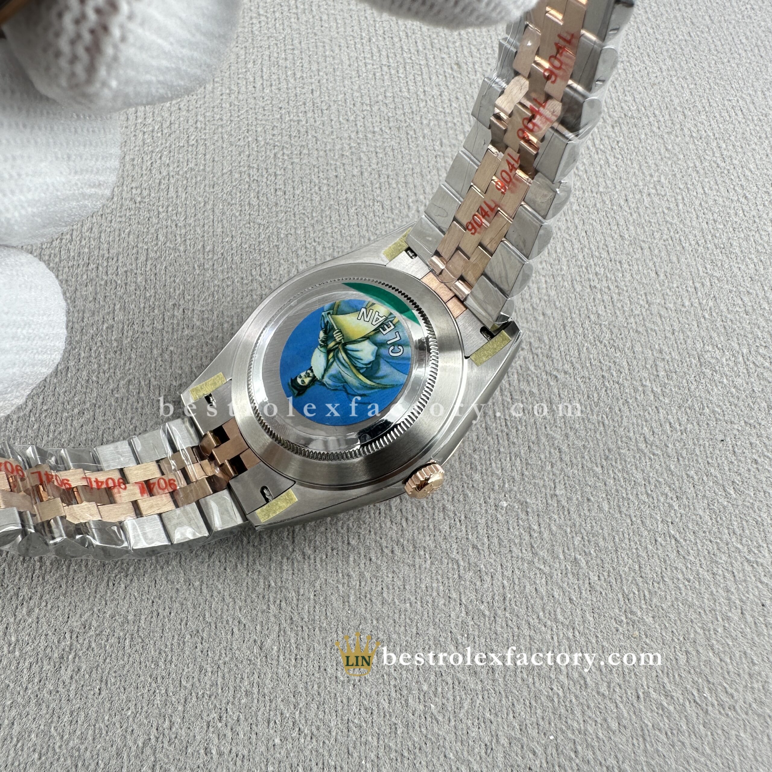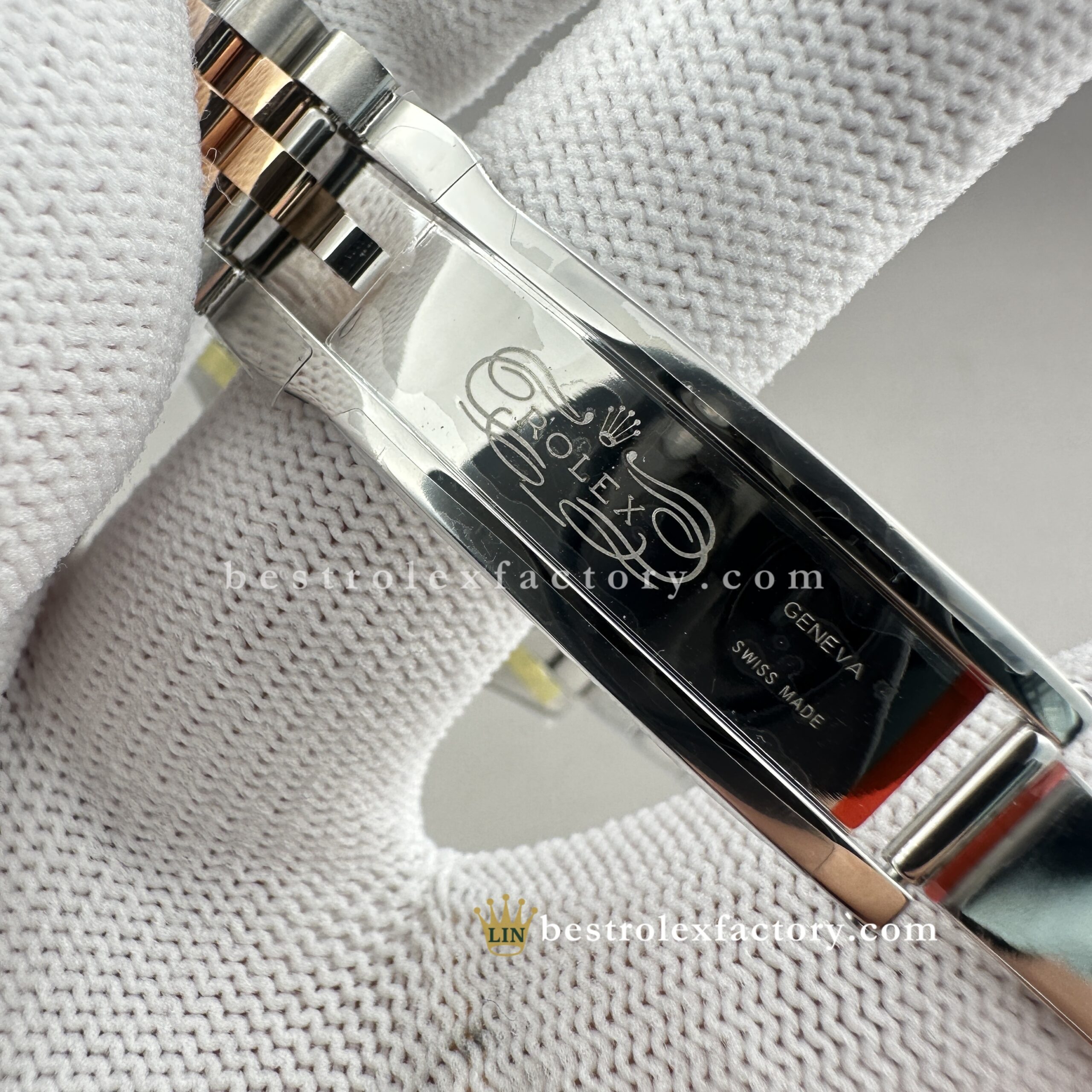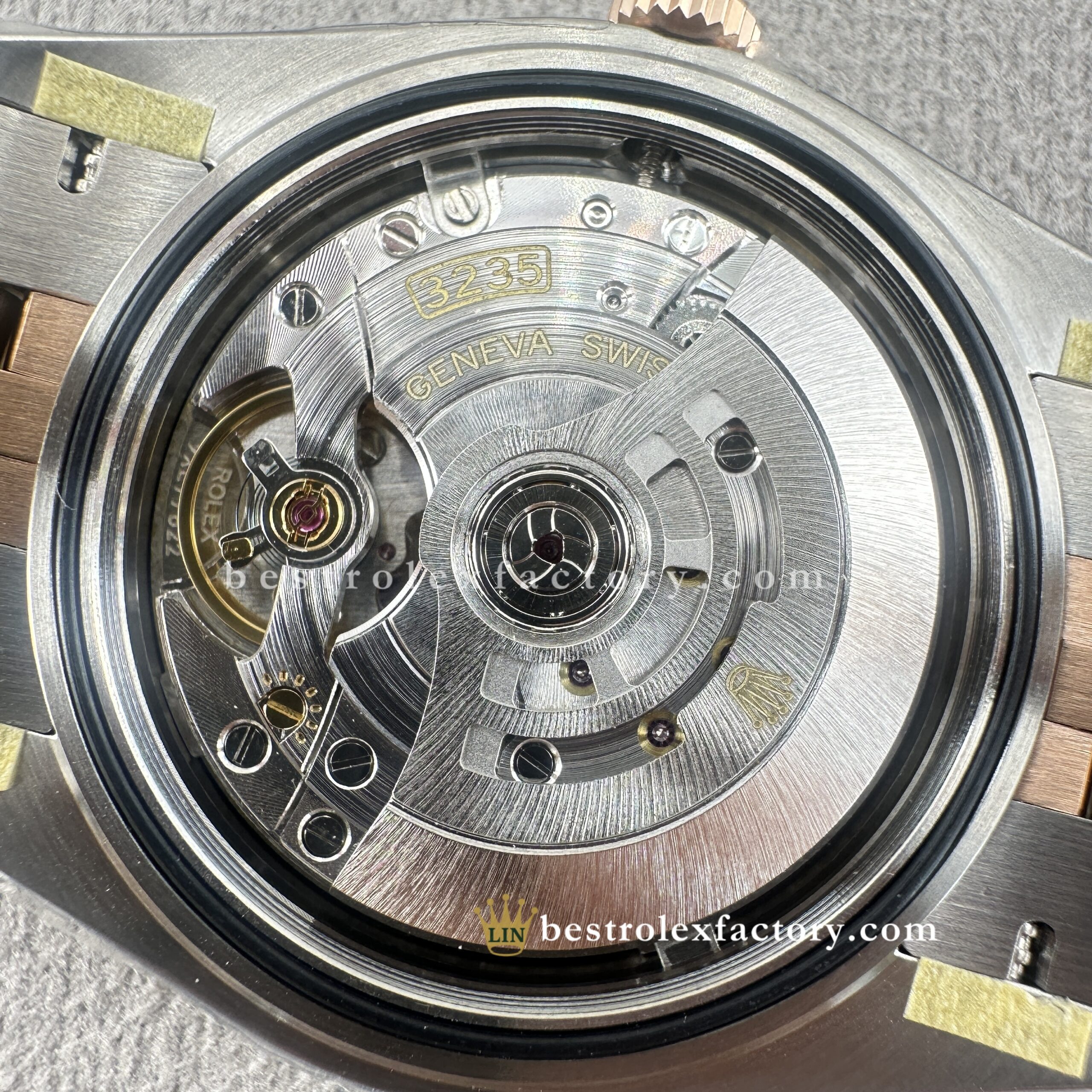 - Clean Factory’s Rolex Datejust 126331-0004 pushes complexity to the absolute limit by adding diamond markers to an already demanding configuration. You’re looking at rose gold fluted bezel wrapping, chocolate dial execution, five-piece Jubilee construction, and top-level moissanite markers—each of these represents a significant manufacturing challenge that most factories can’t even handle individually. Combining them seamlessly is what sets this build apart from anything else in the replica market.