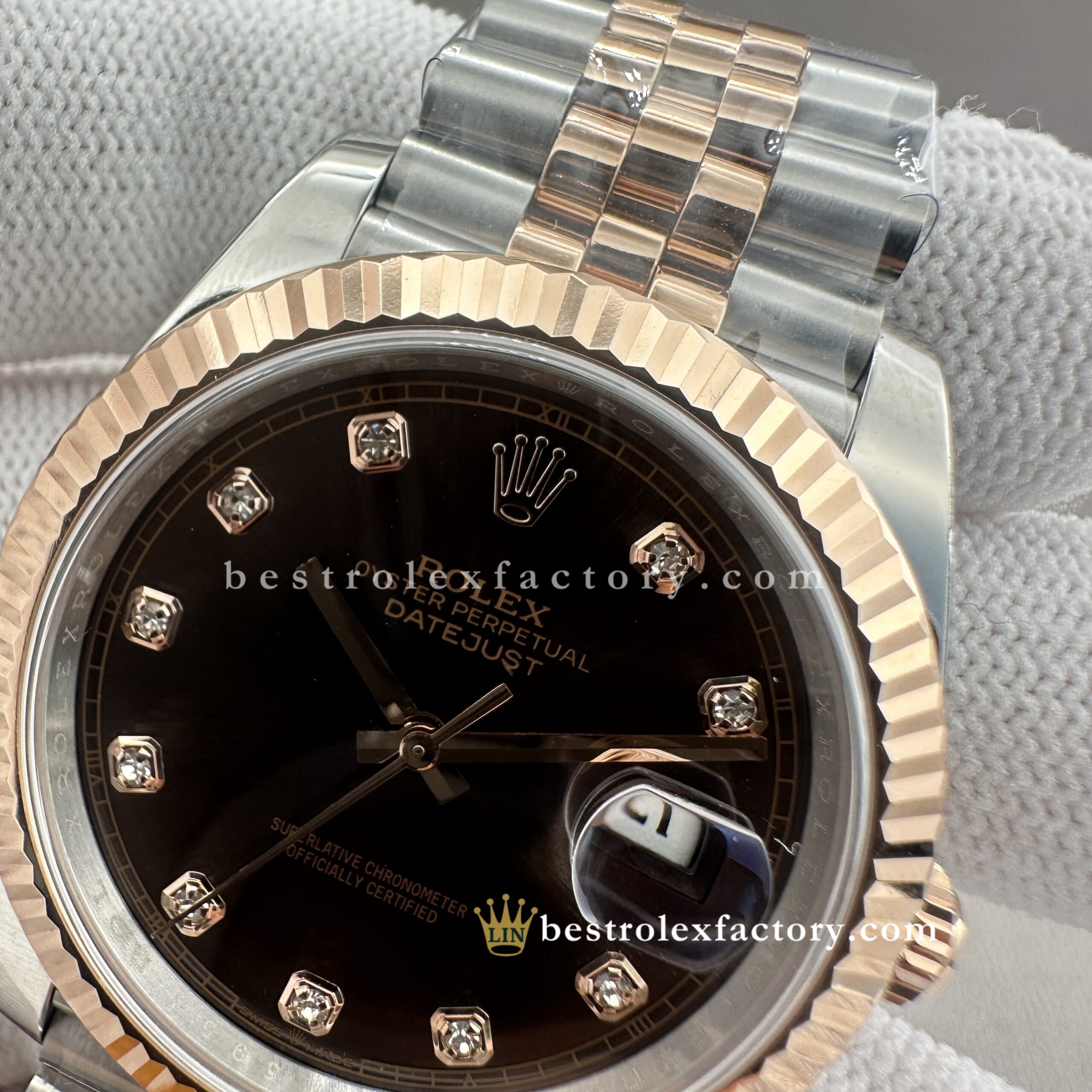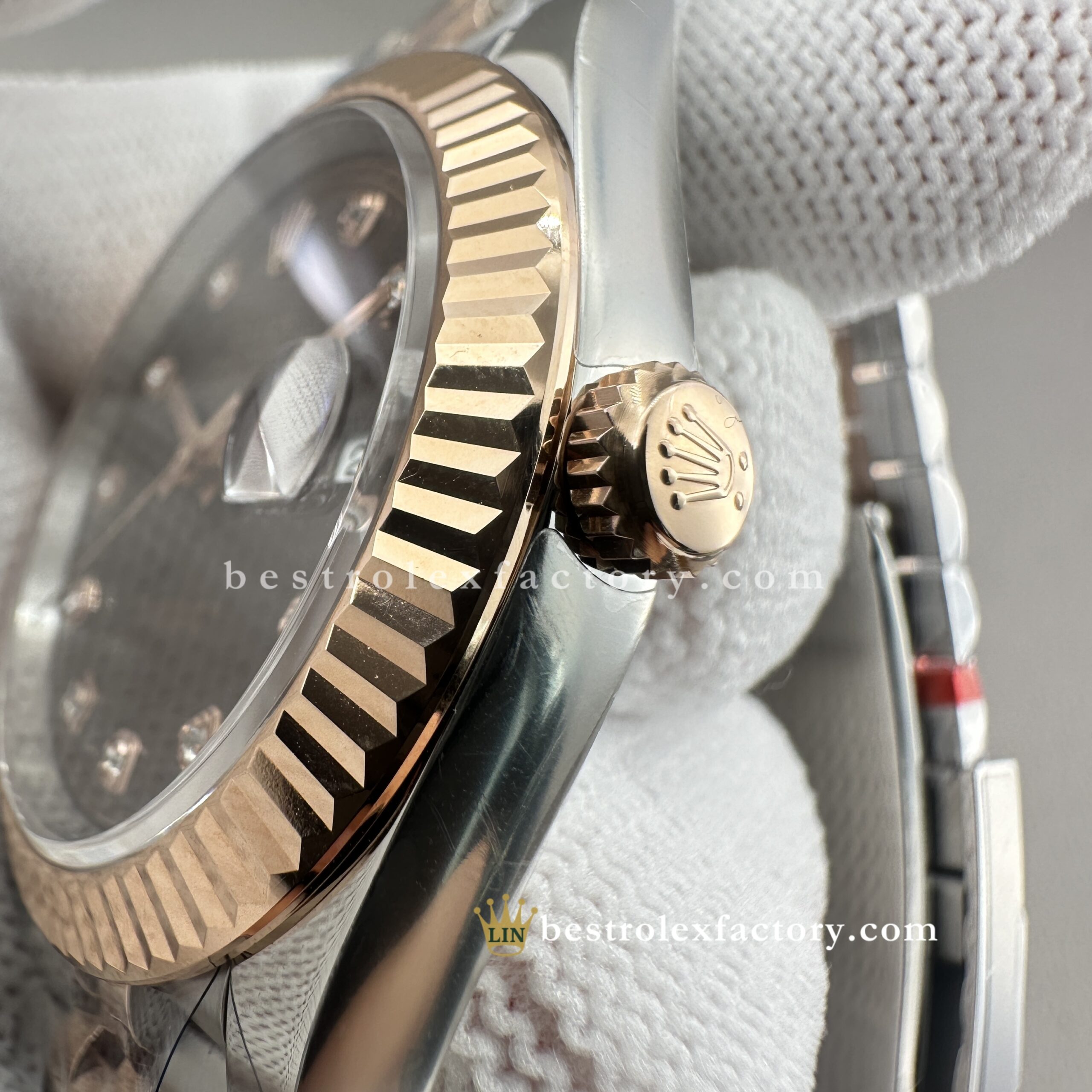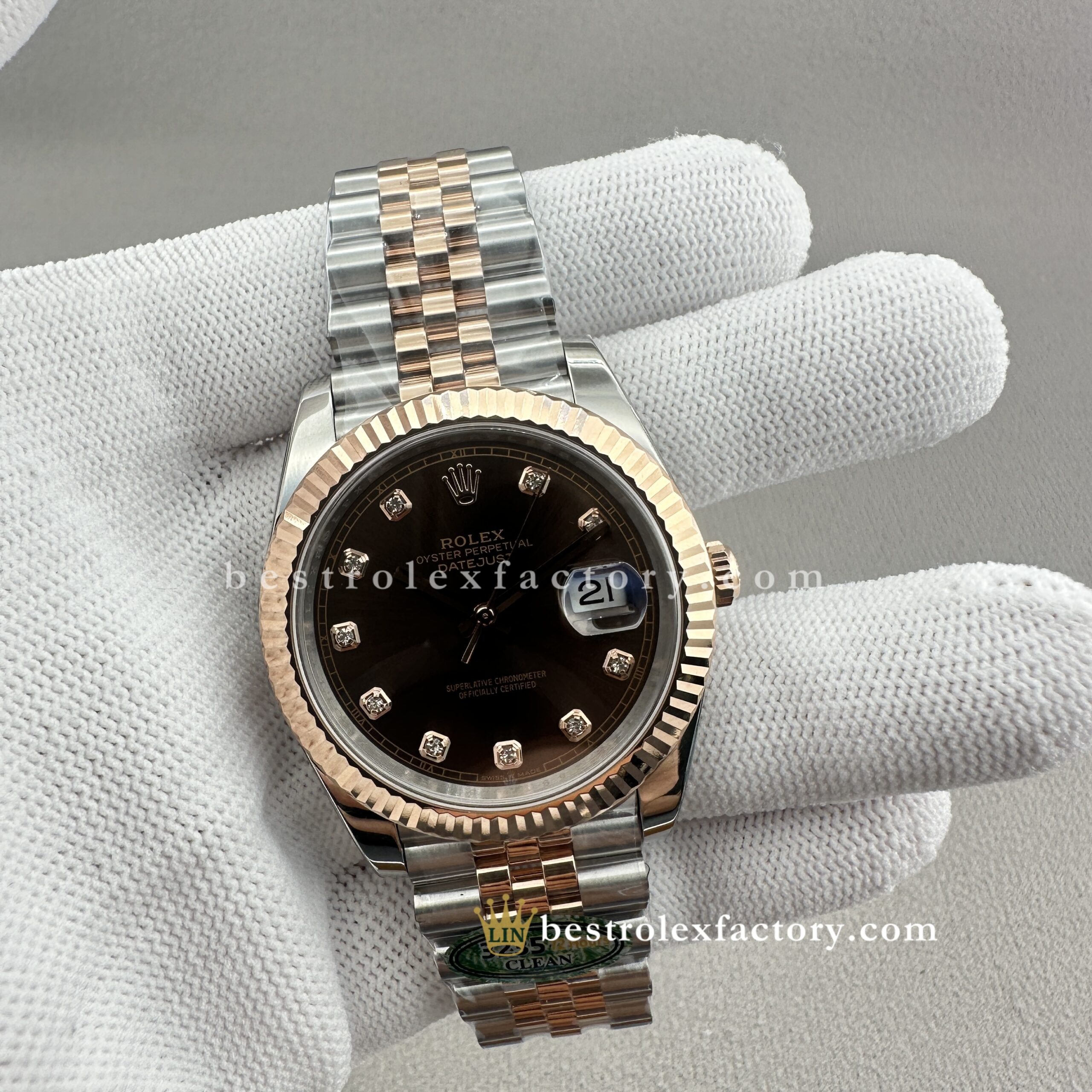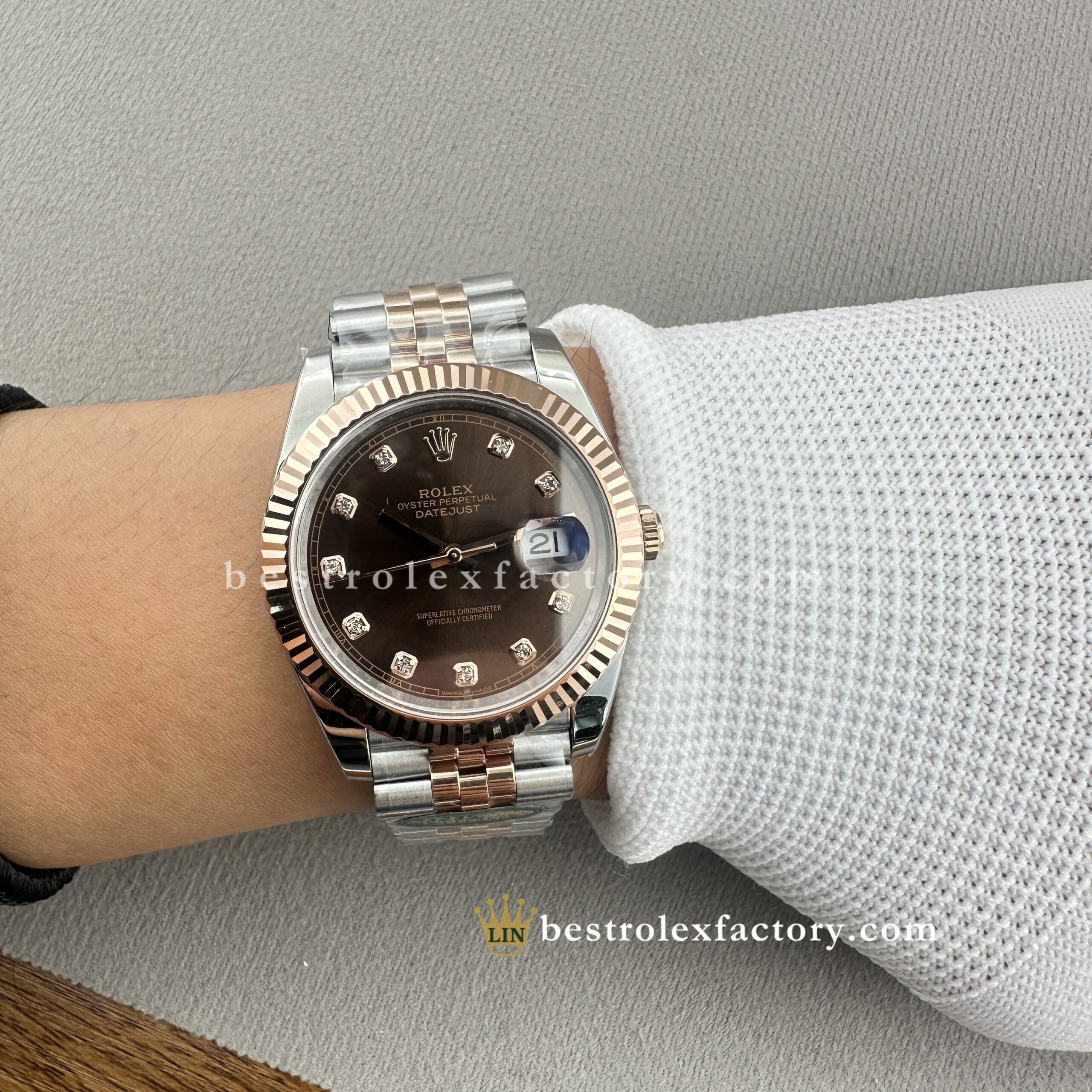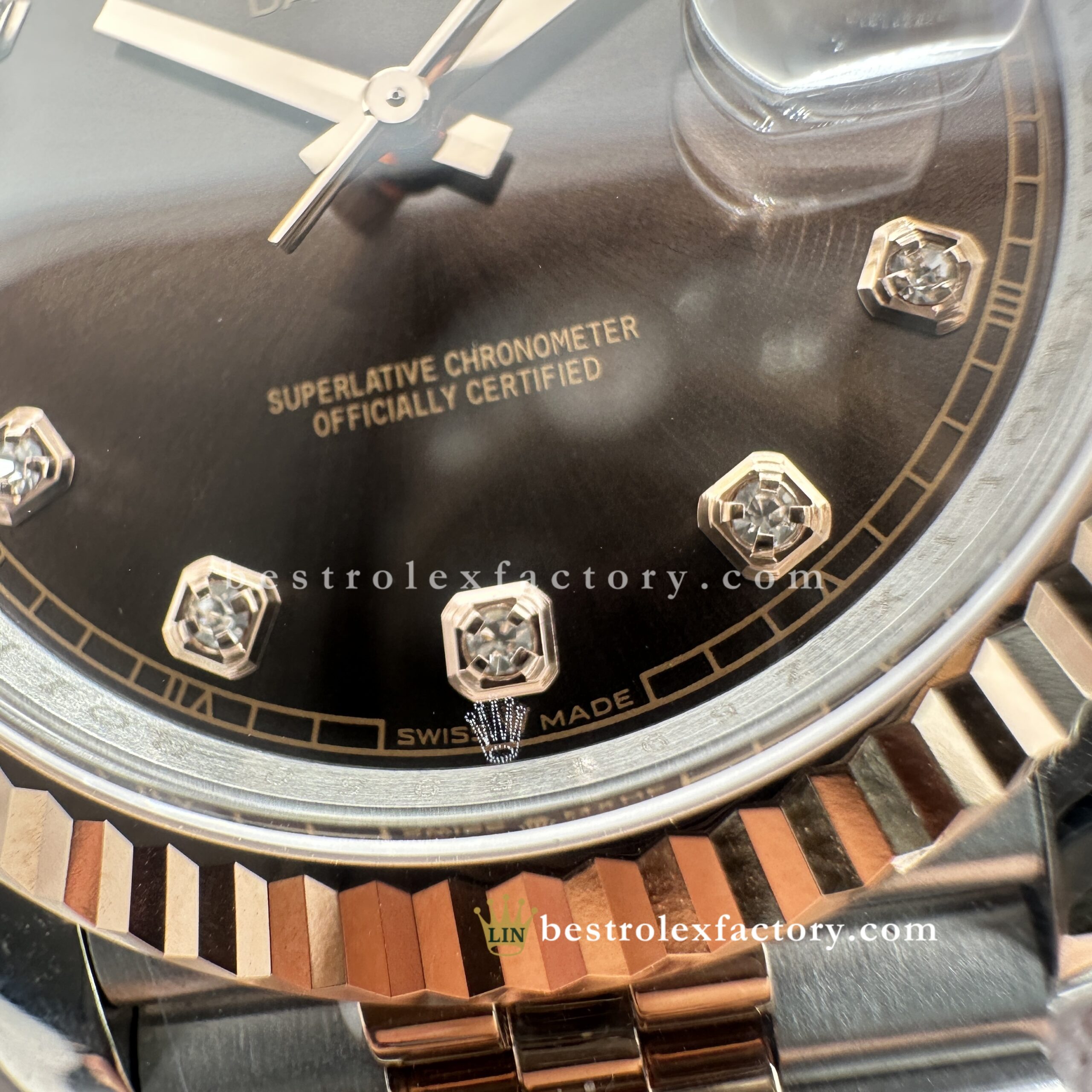 - Achieving perfect harmony across the chocolate dial, diamond markers, fluted rose gold bezel, and Jubilee bracelet requires tight coordination between multiple production processes. Tone matching across all rose gold elements becomes even more critical because the diamonds draw the eye to every detail. Any variation in color or finish stands out immediately.
