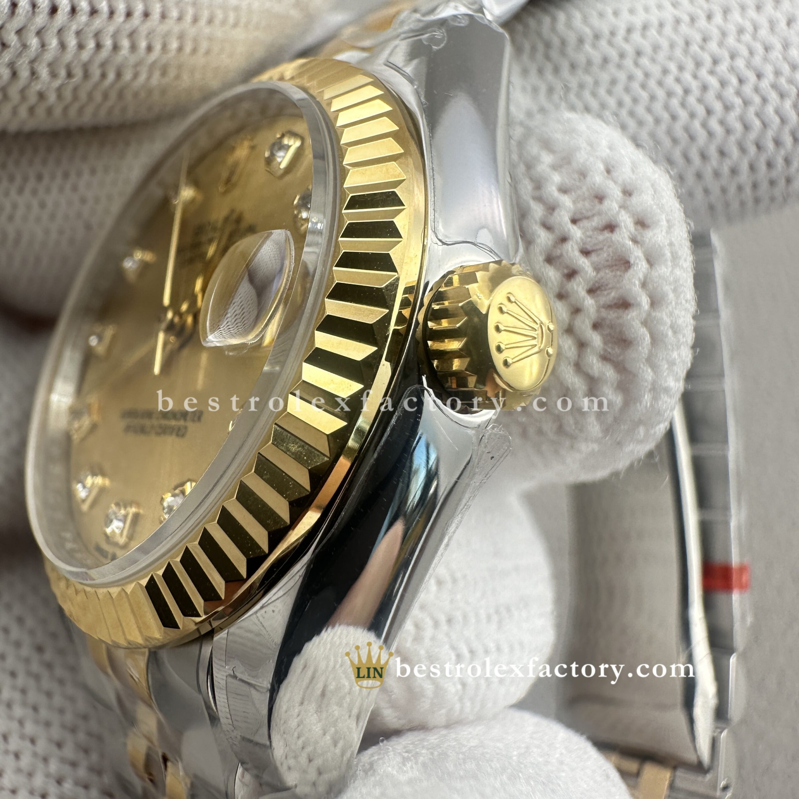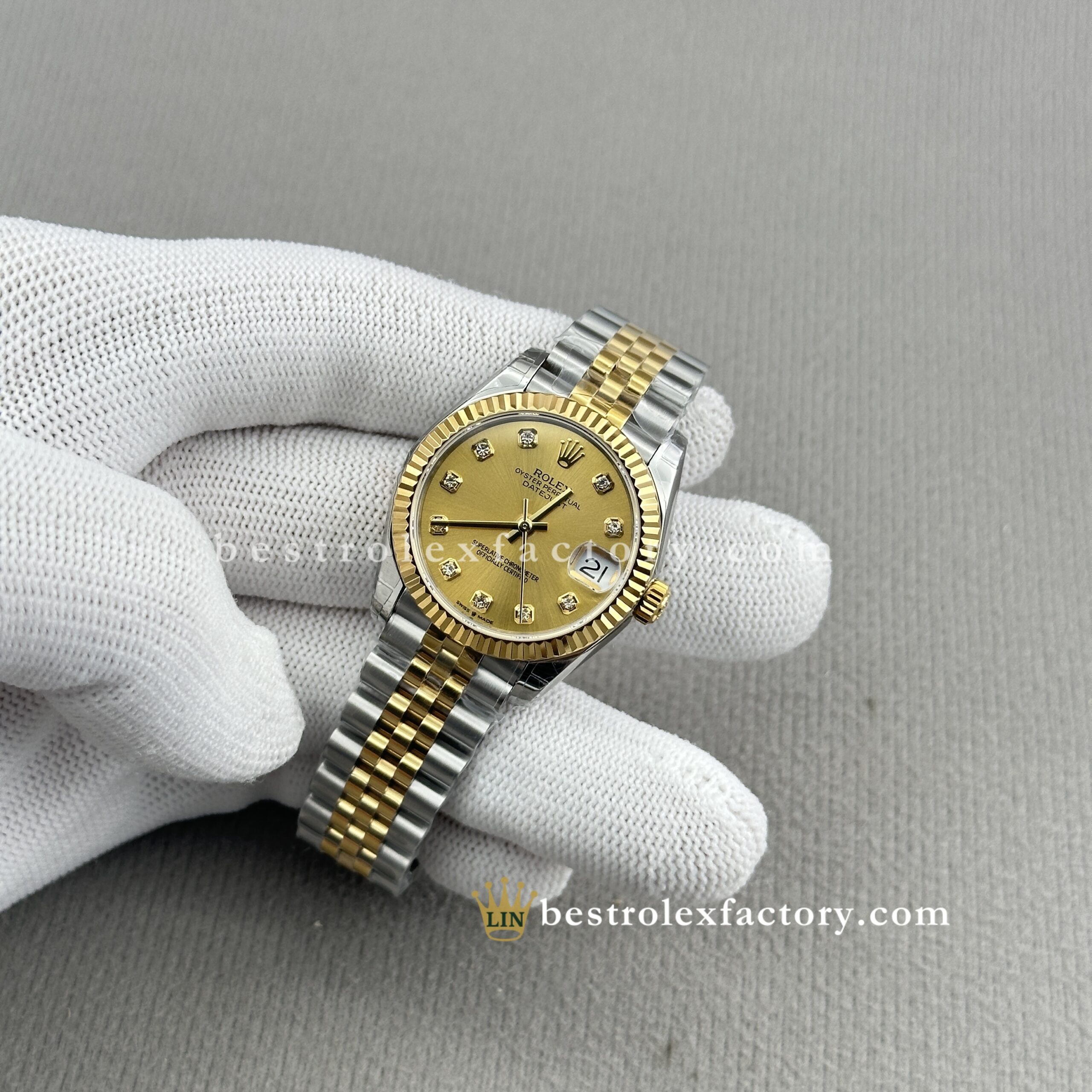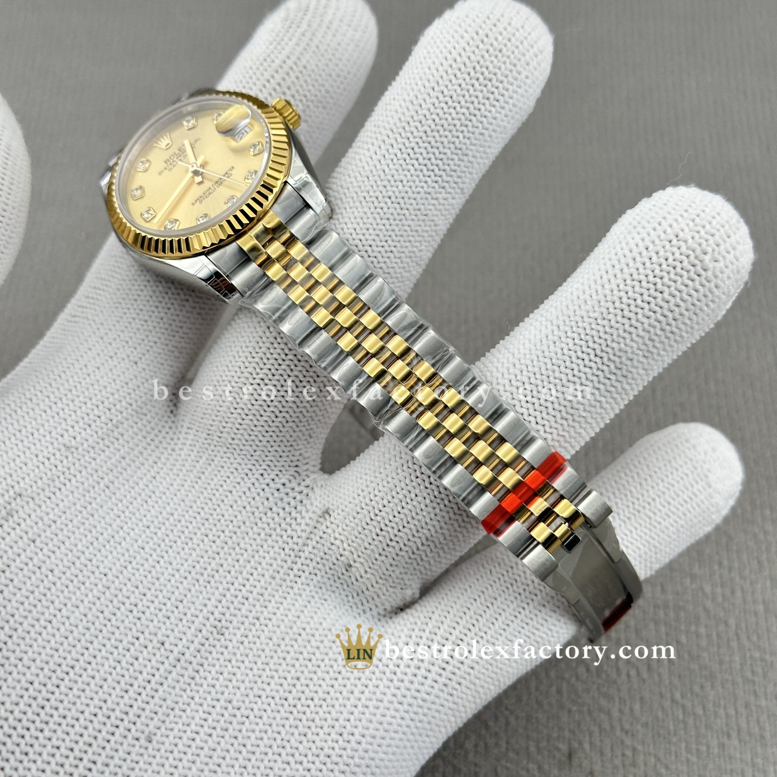 - Clean Factory’s Lady Best replica Rolex Datejust 278273-0026 brings together champagne and yellow gold in seamless harmony—a pairing that’s stood the test of time and now shines brighter than ever thanks to the addition of brilliant moissanite markers. At 31mm, it captures that golden-hour glow with a timeless charm that feels as relevant today as ever.