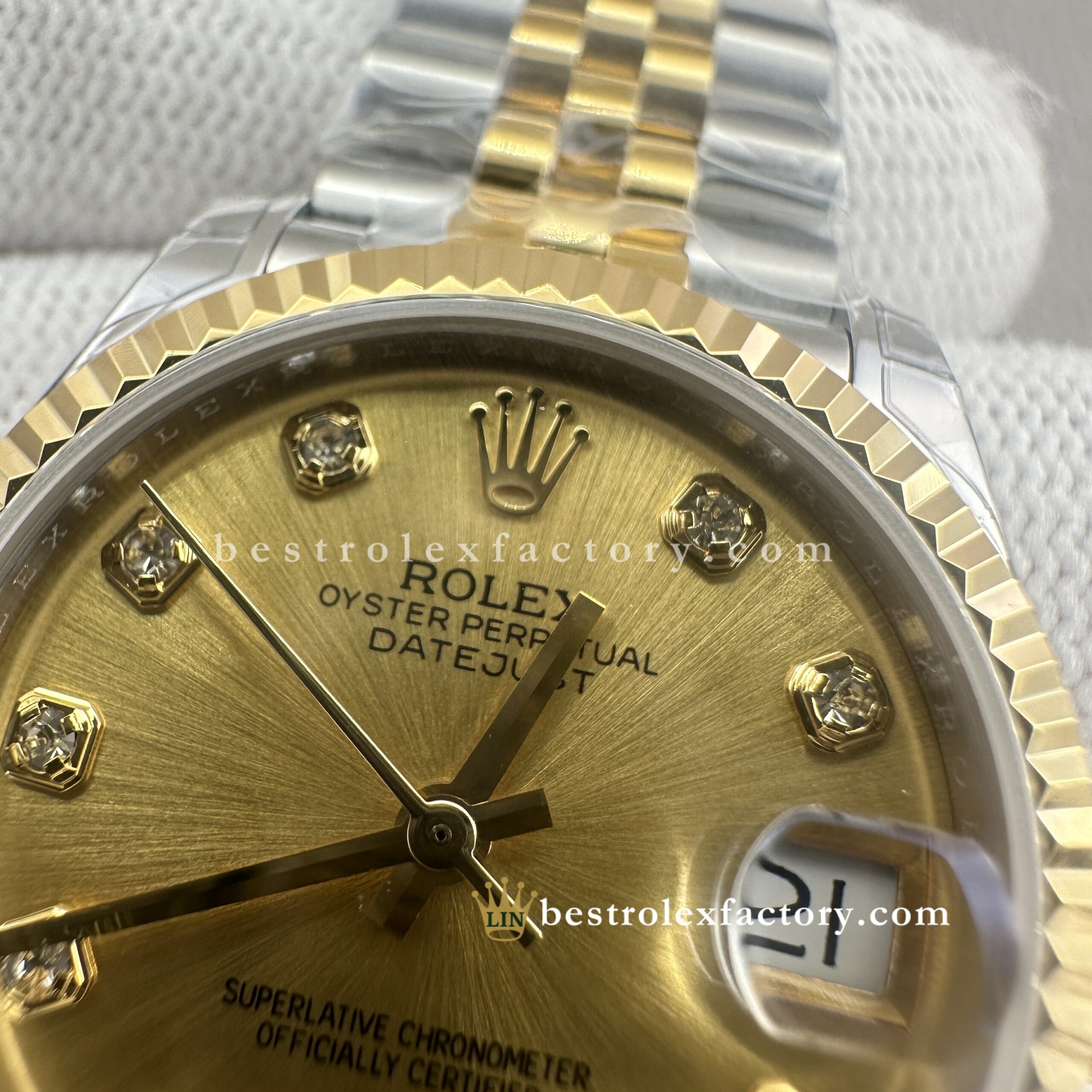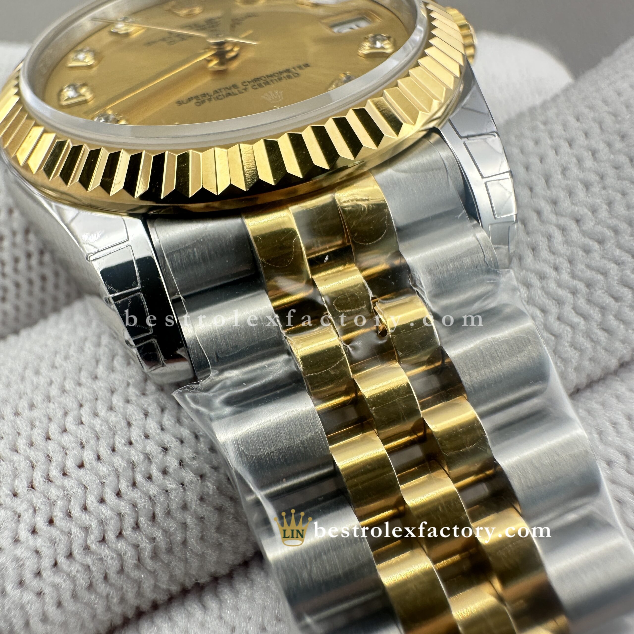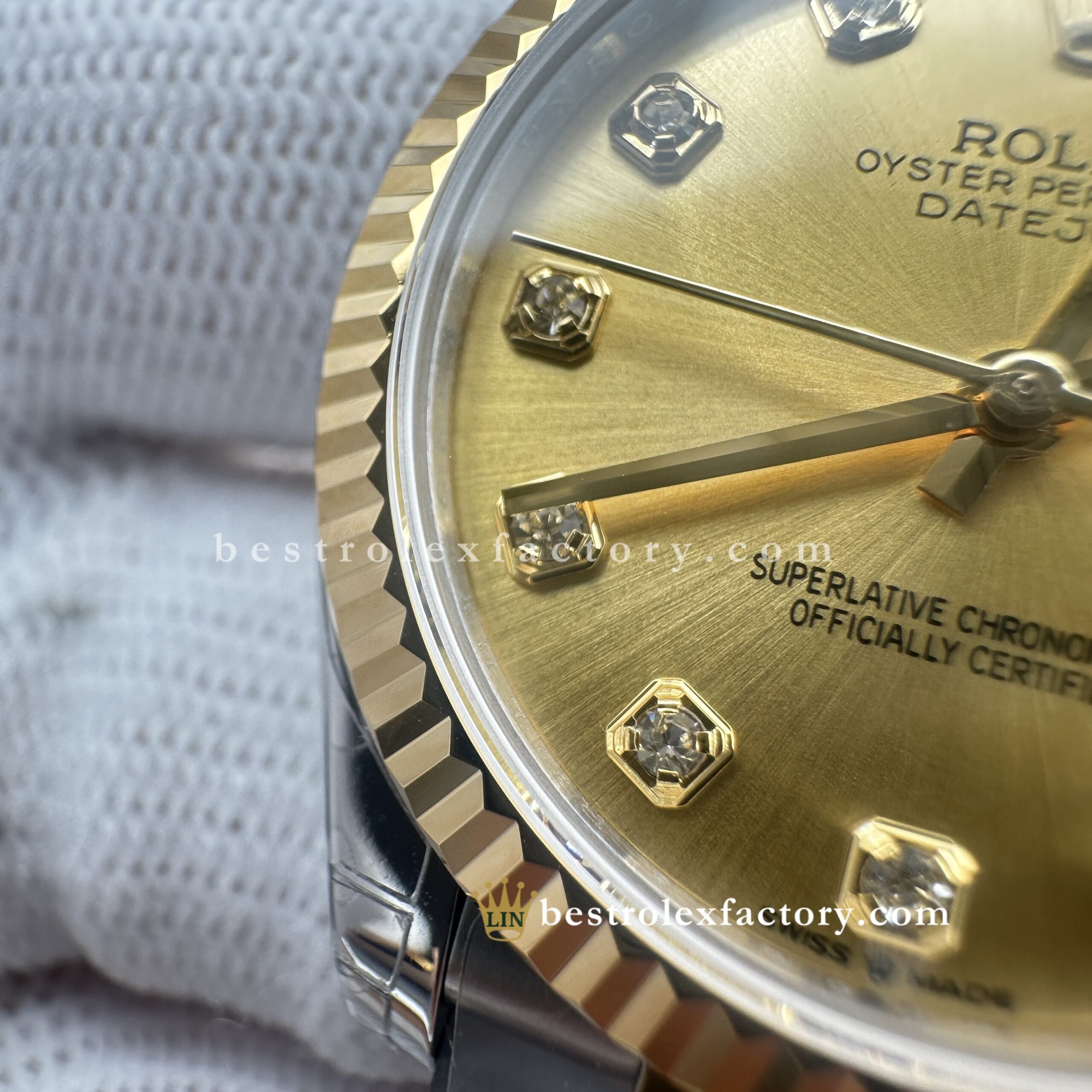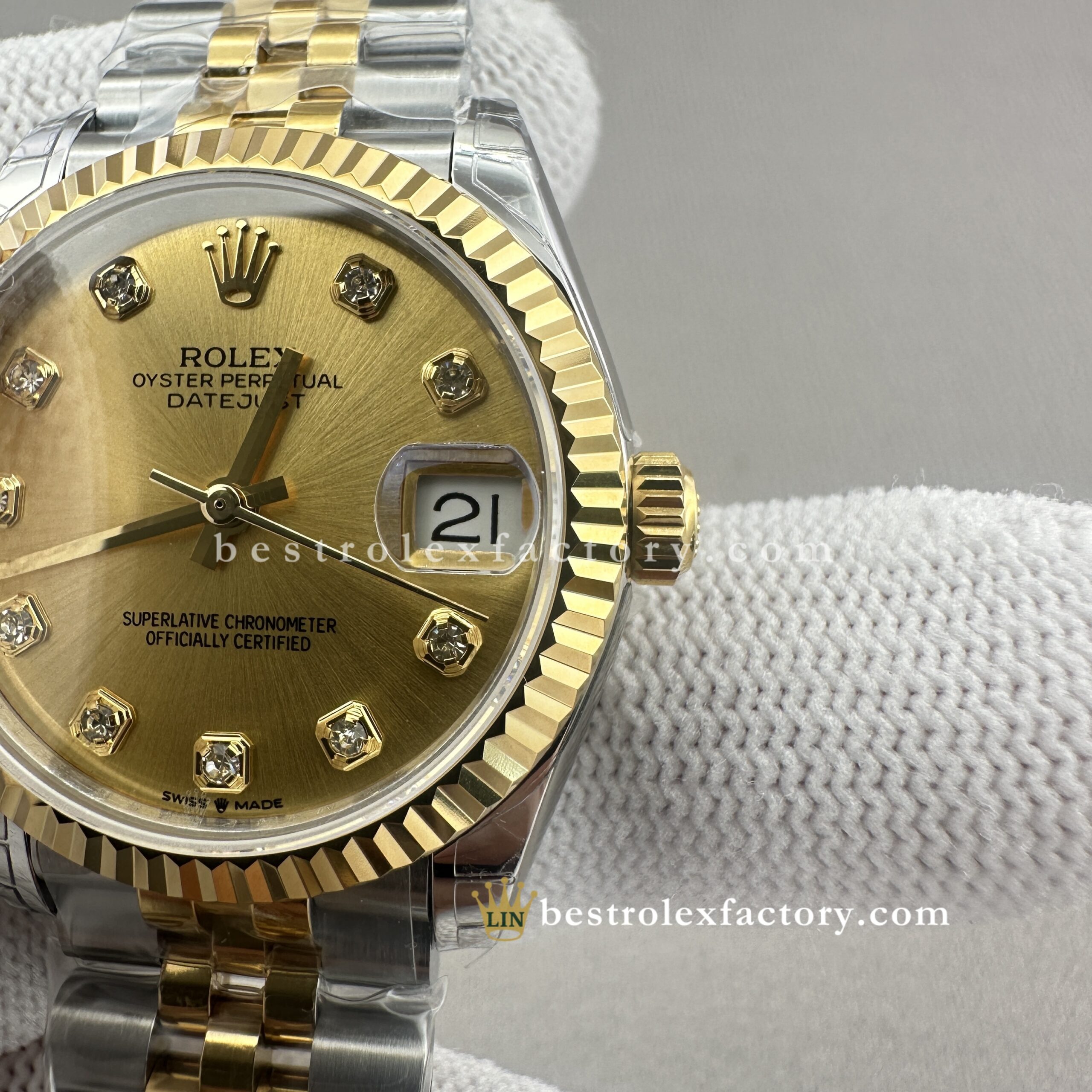 - Clean Factory’s Lady Best replica Rolex Datejust 278273-0026 brings together champagne and yellow gold in seamless harmony—a pairing that’s stood the test of time and now shines brighter than ever thanks to the addition of brilliant moissanite markers. At 31mm, it captures that golden-hour glow with a timeless charm that feels as relevant today as ever.